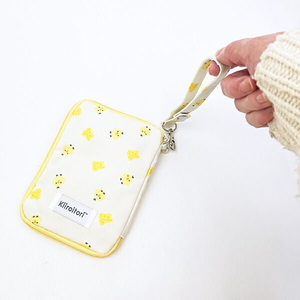 キイロイトリのチラシ柄がかわいいパスポートポーチです。フリーポケット2つ、ファスナーポケット、メッシュポケットと、ポケットいっぱいで使いやすい♪パスポート以外のものを入れても◎ 【サイズ:11cm×15.5cm×1.5cm 素材:ポリエステル】 【サイズ:11cm×15.5cm×1.5cm 素材:ポリエステル】