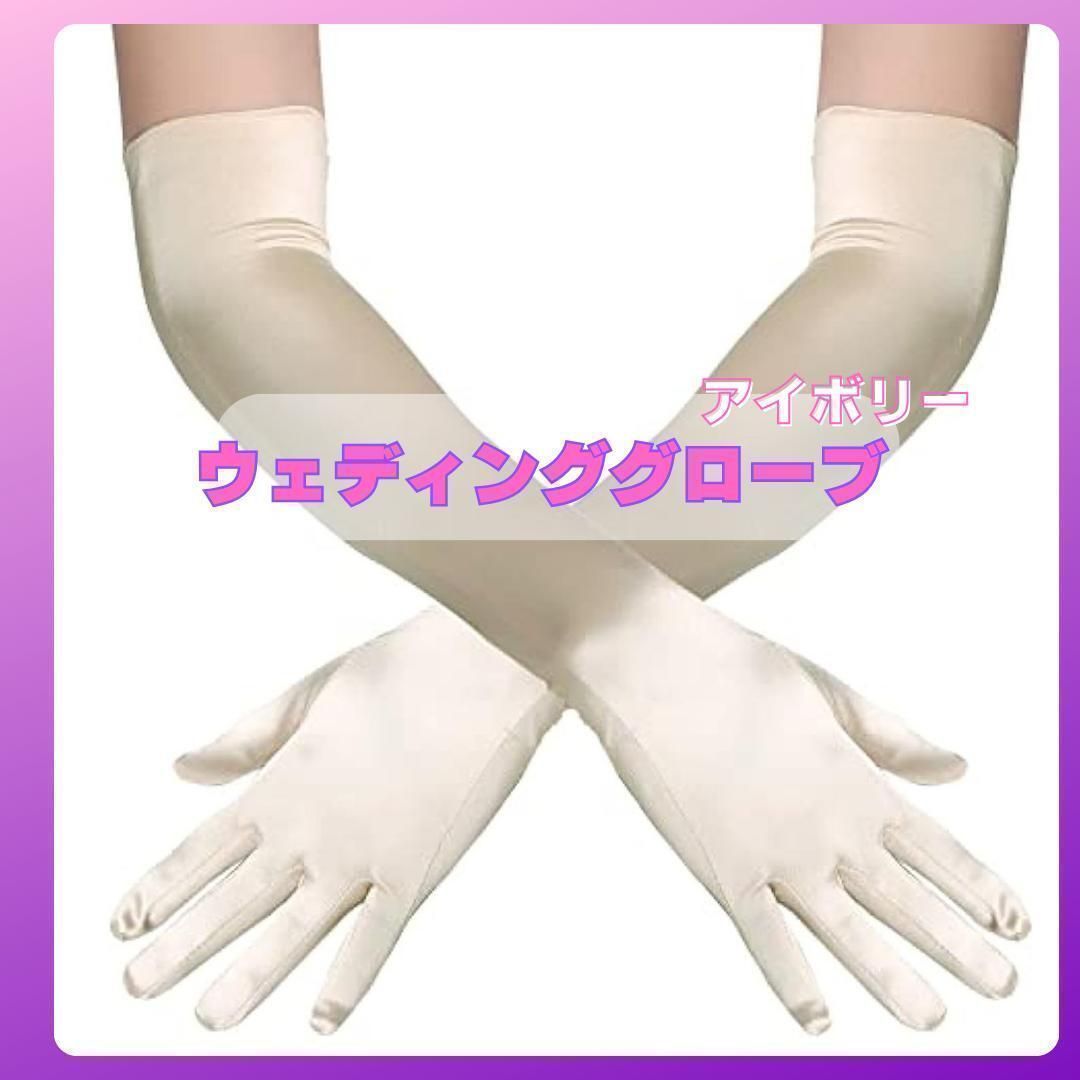 サテングローブ ホワイト アイボリー 55㎝ ウェディング 結婚式 花嫁1224 ブライダル 手袋 ドレス 衣装 小物 コスプレ