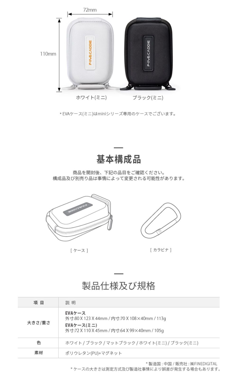EVA高級ケース【J5・J5RED・J7対応】ゴルフ用距離計専用ケース マグネット式ハードケース ゴ EVA収納ケース カラビナ付き ファインキャディ 本社直営 finecaddie ブラック