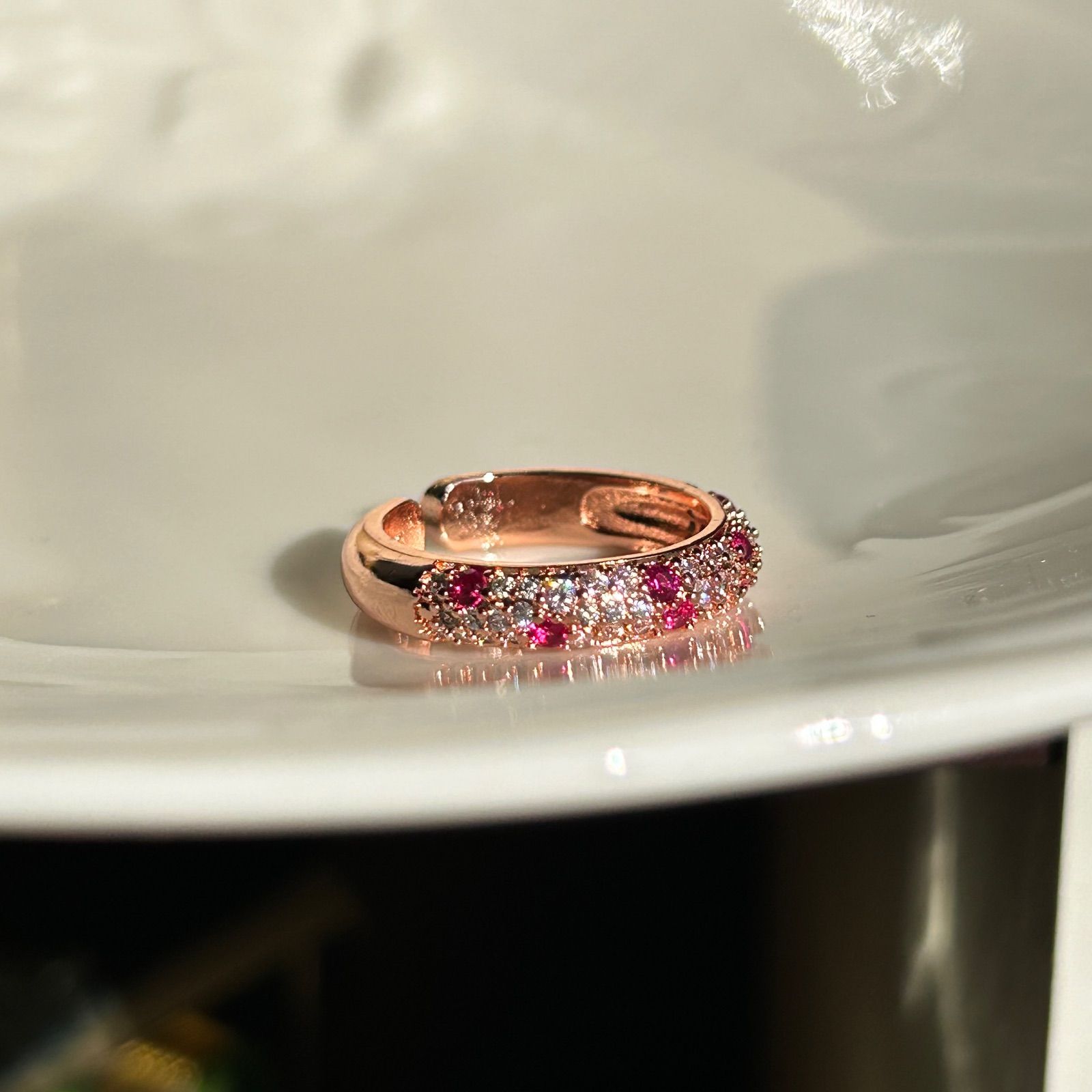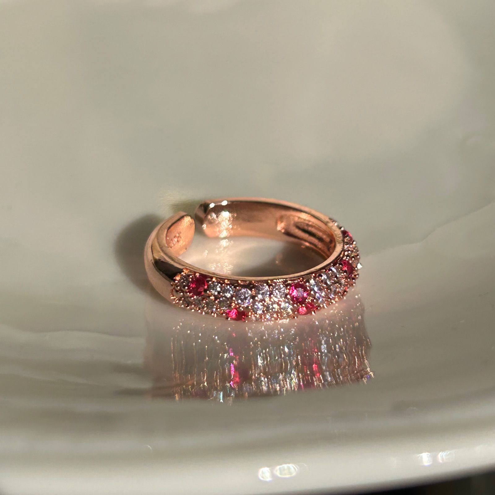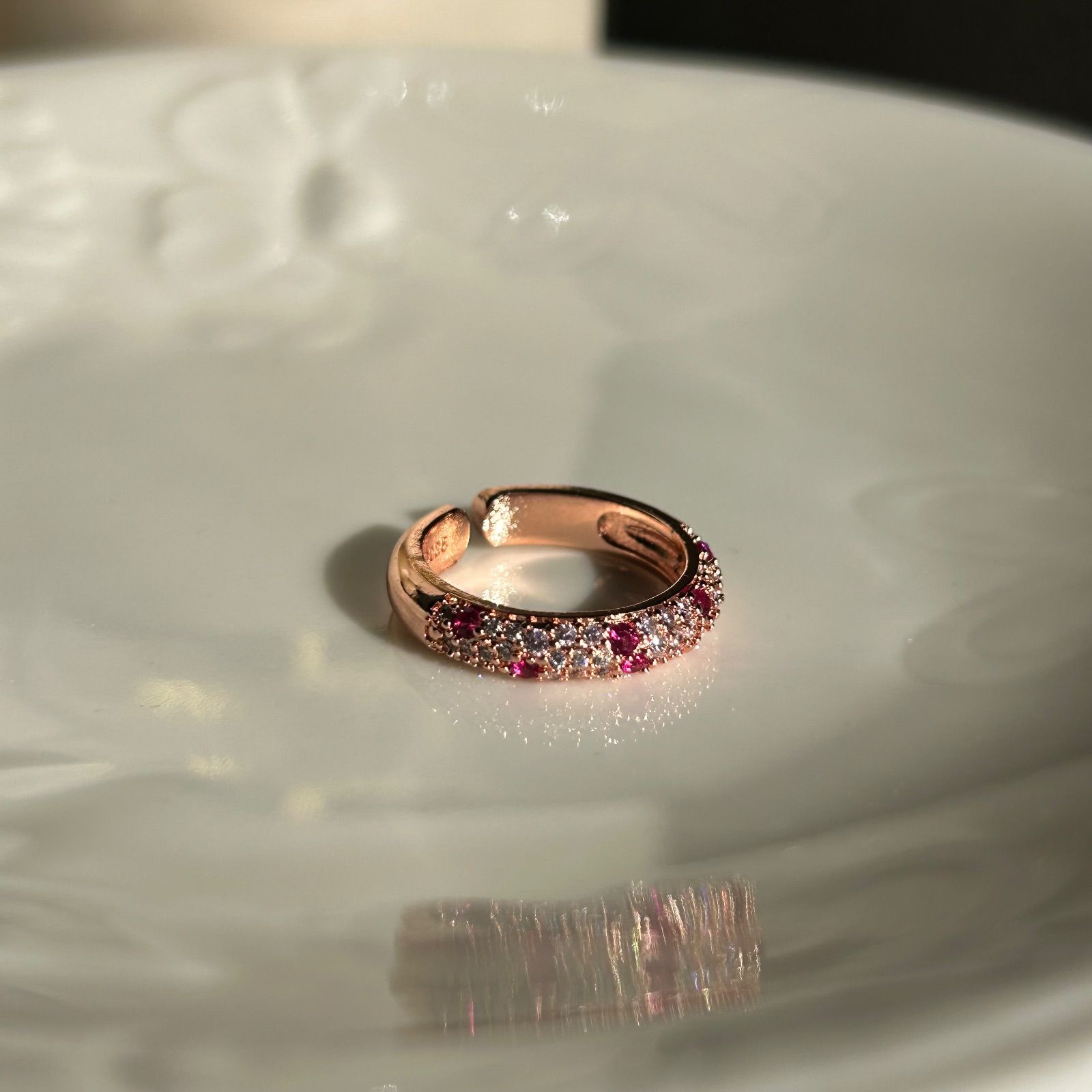 ルビーカラー パヴェ 小粒 CZダイヤ キラキラ ピンク ゴールド リング