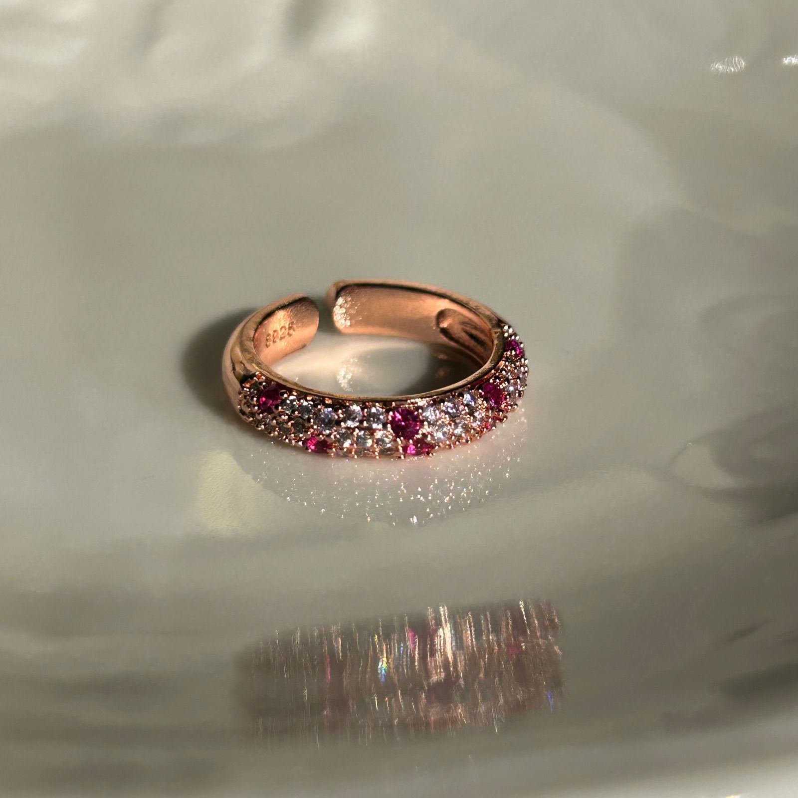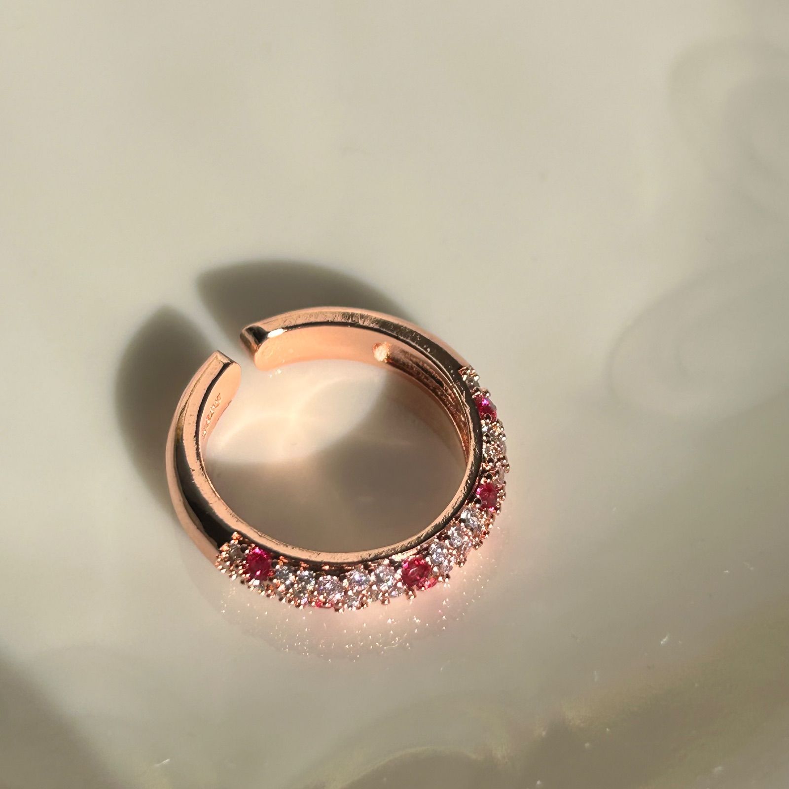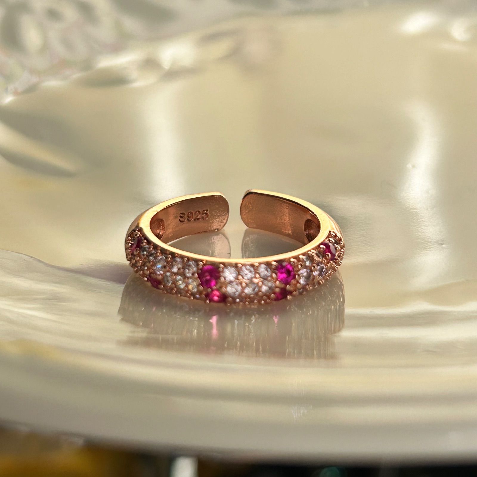 ルビーカラー パヴェ 小粒 CZダイヤ キラキラ ピンク ゴールド リング