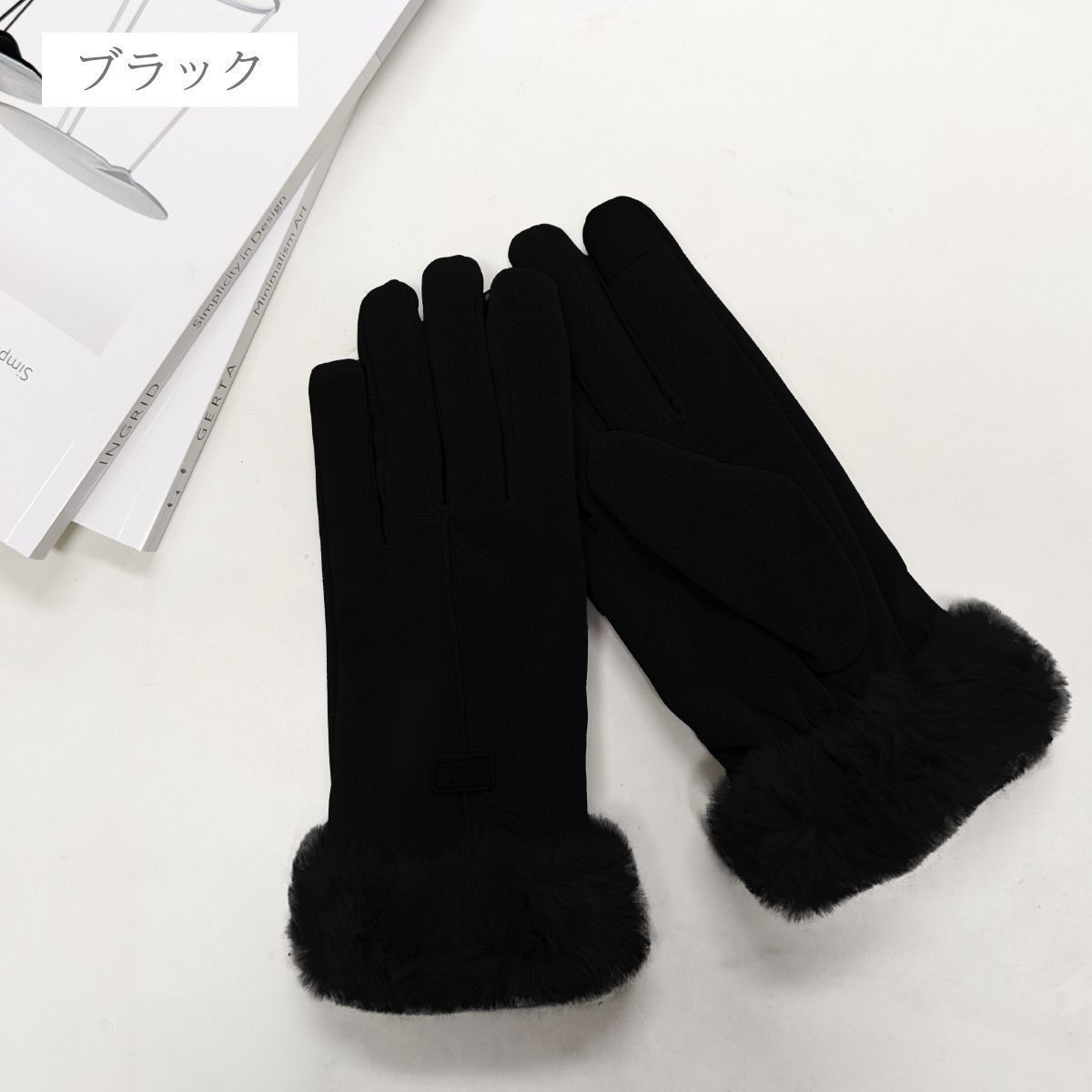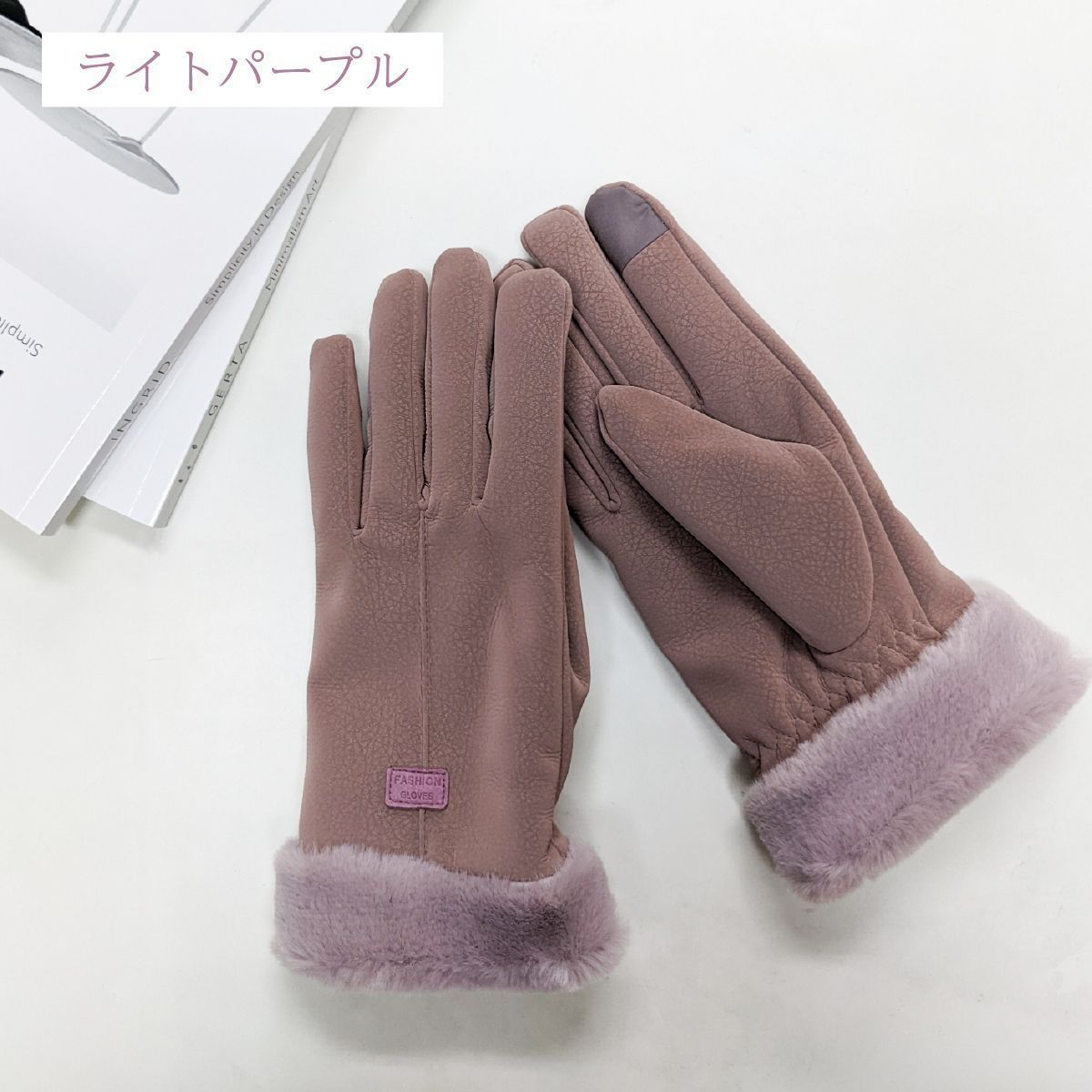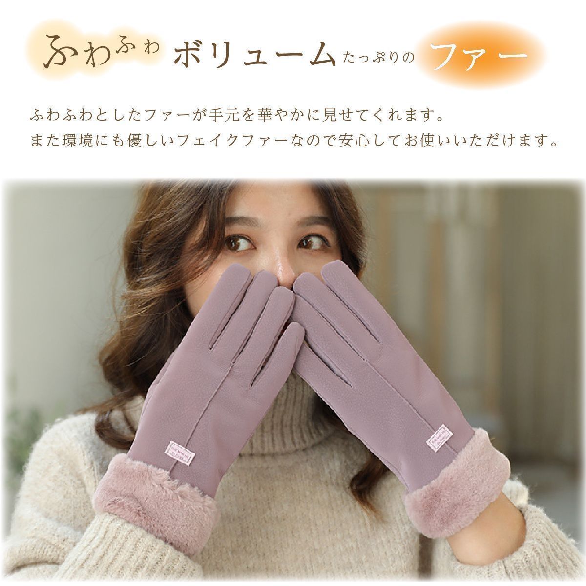 寒い季節にピッタリな裏起毛のファー付きグローブです。