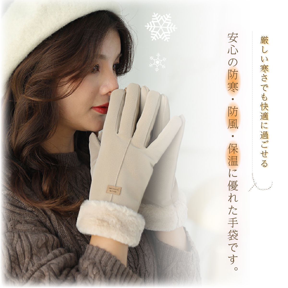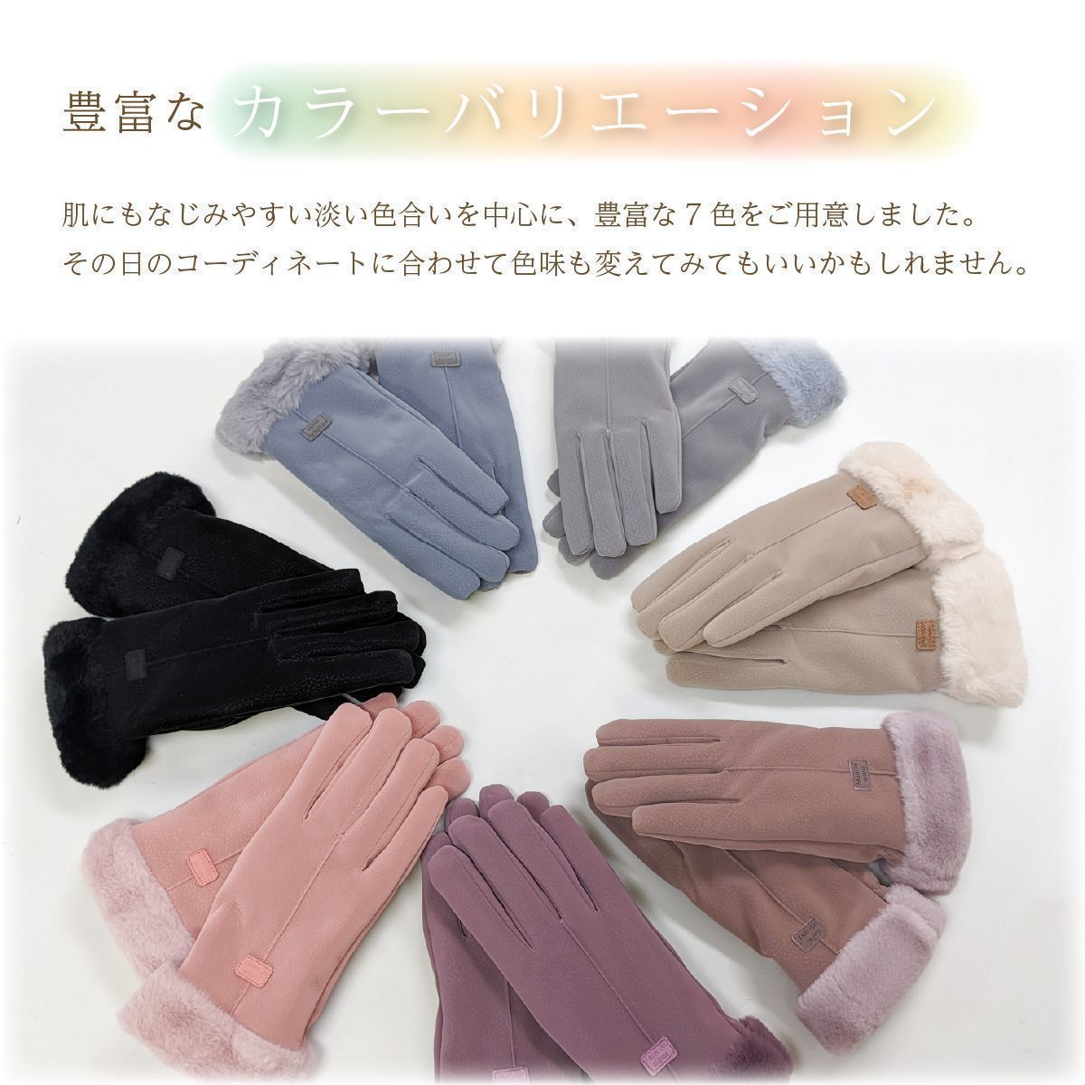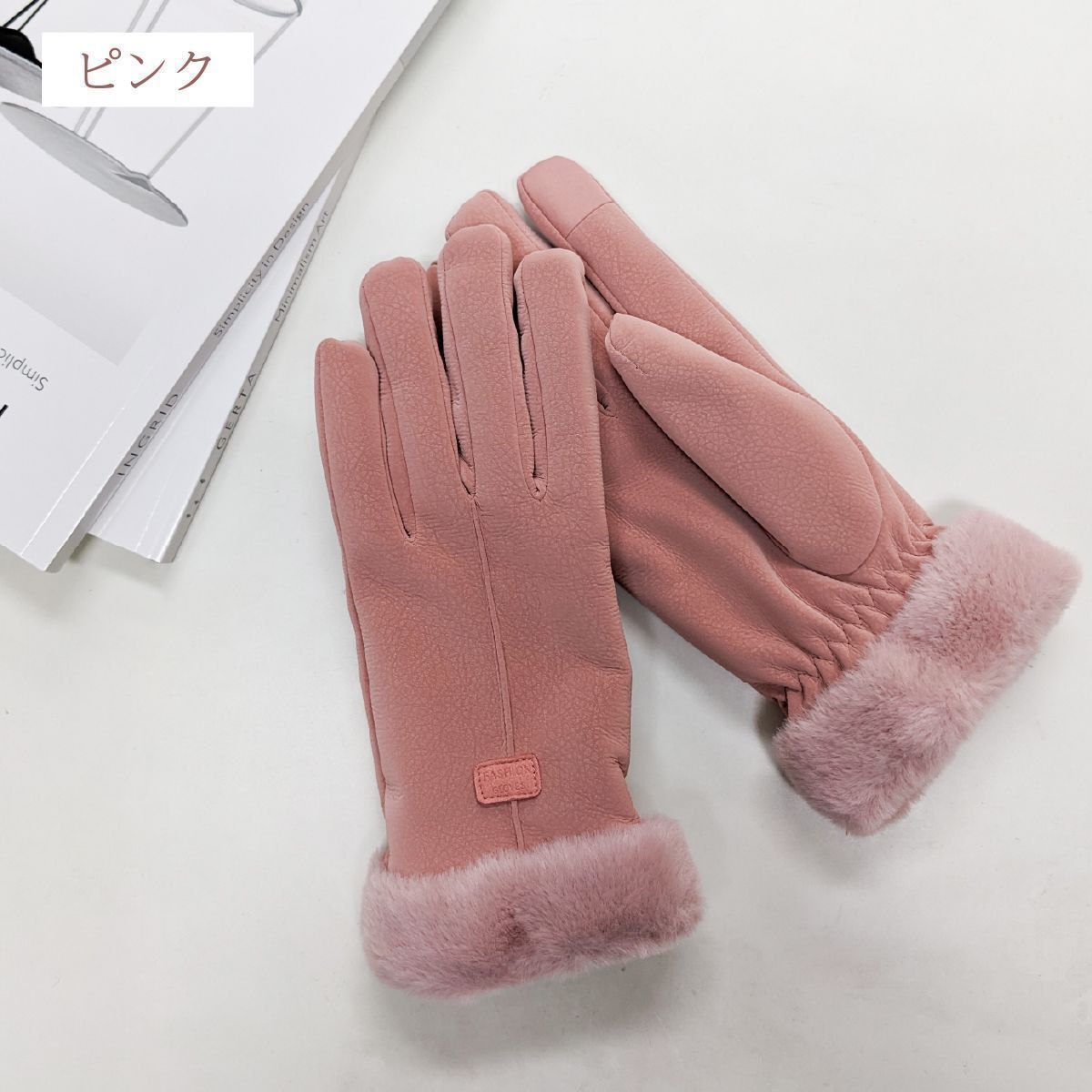 寒い季節にピッタリな裏起毛のファー付きグローブです。
