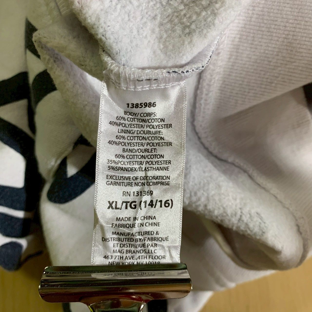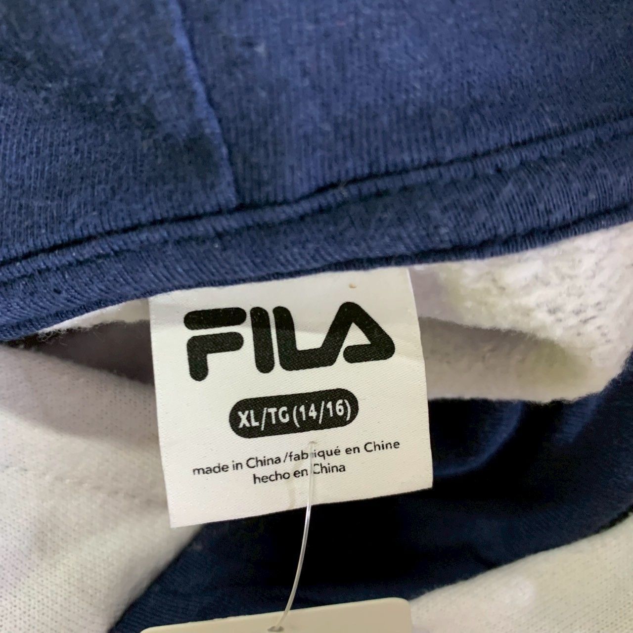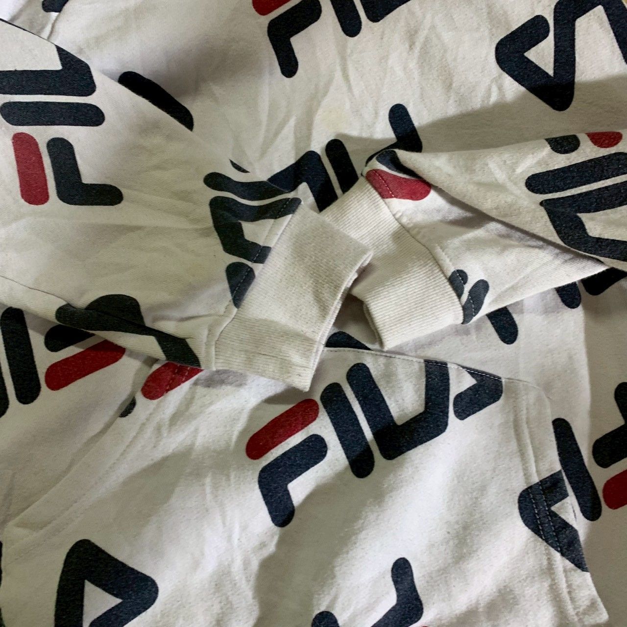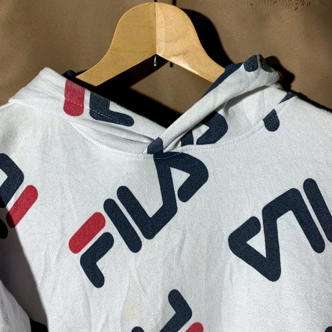 FILA ホワイト フーディー XL ロゴ 総柄 パーカー レディース プルオーバー 秋冬 古着 TK1468