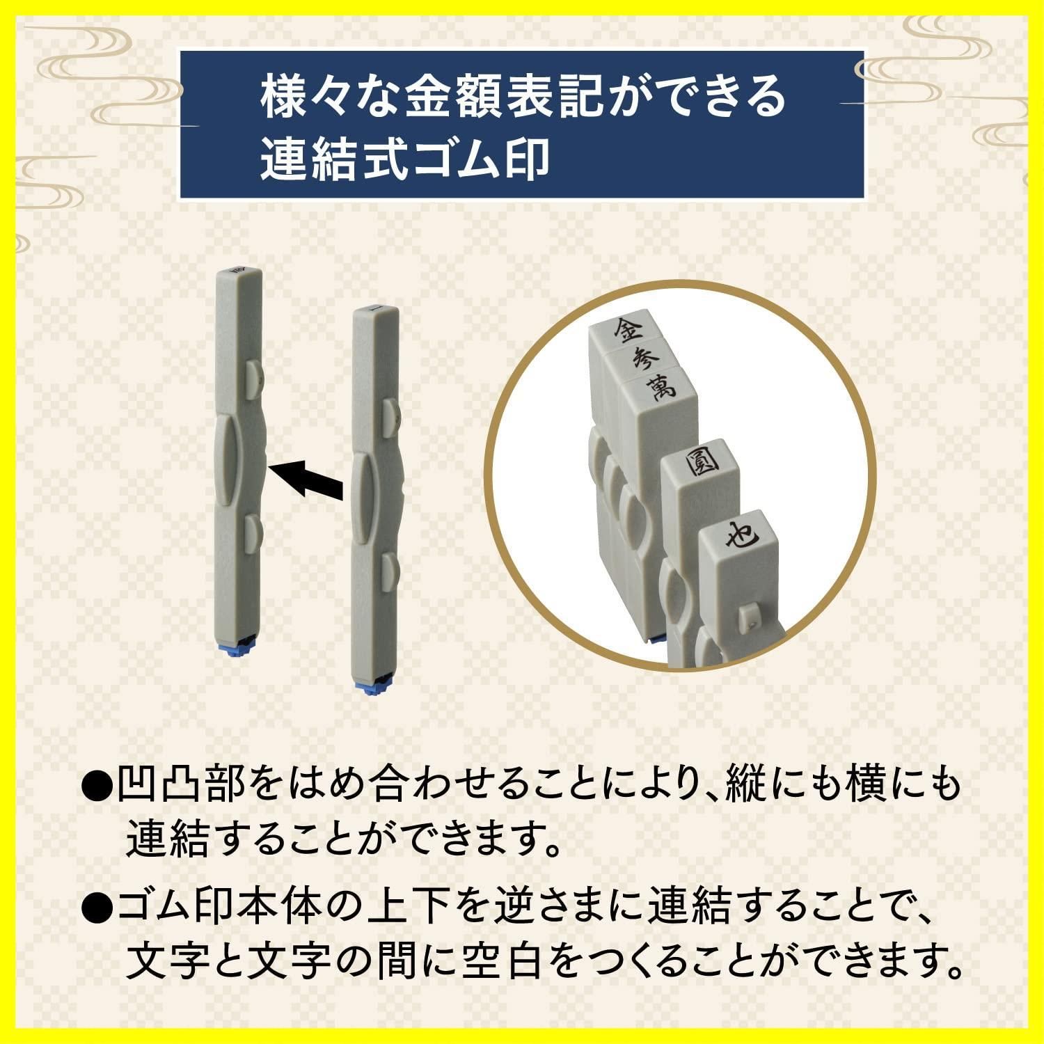 ゴム印は連結式なので、様々な金額表記ができます。