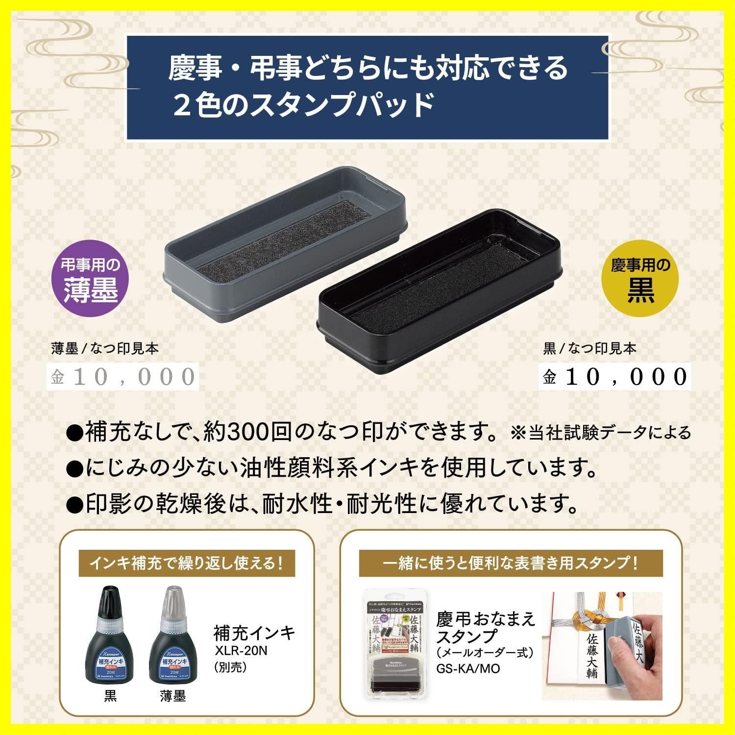 スタンプパッドの本体サイズ幅73mm×奥行30.6mm×高さ13.3mm(墨・薄墨2色) インキ補充スタンプパッドはインキ補充で繰り返し使用可能。※補充インキは別売です。(補充インキ品番:XLR-20N)