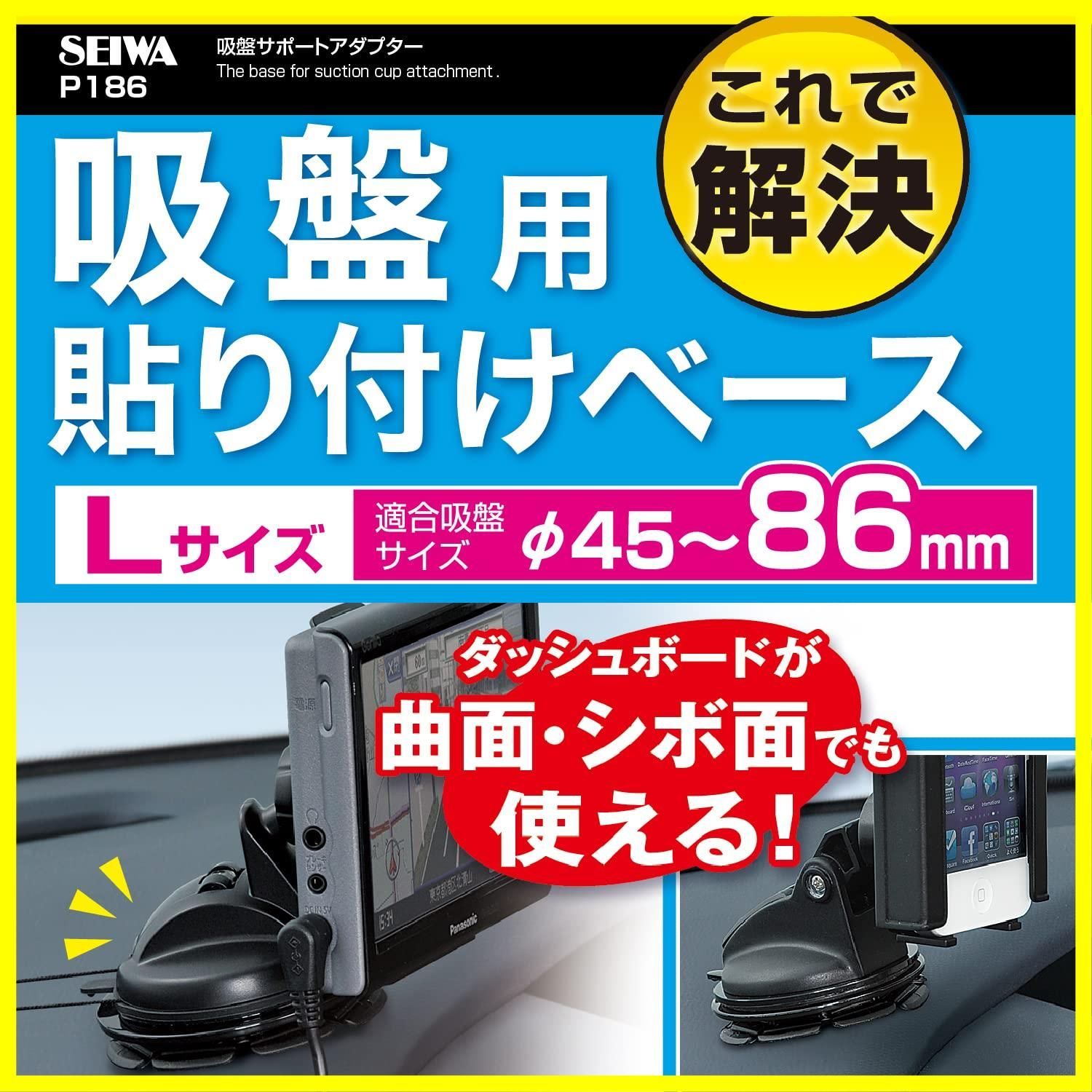 セイワSEIWA) 車内用品 ポータブルナビ用吸盤サポートアダプター P186 直径90mm ブラックBK) PND取付固定 ダッシュボード曲面取付可能