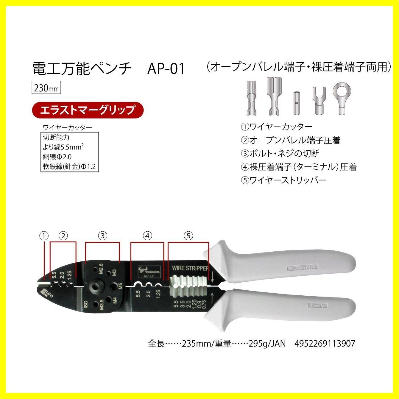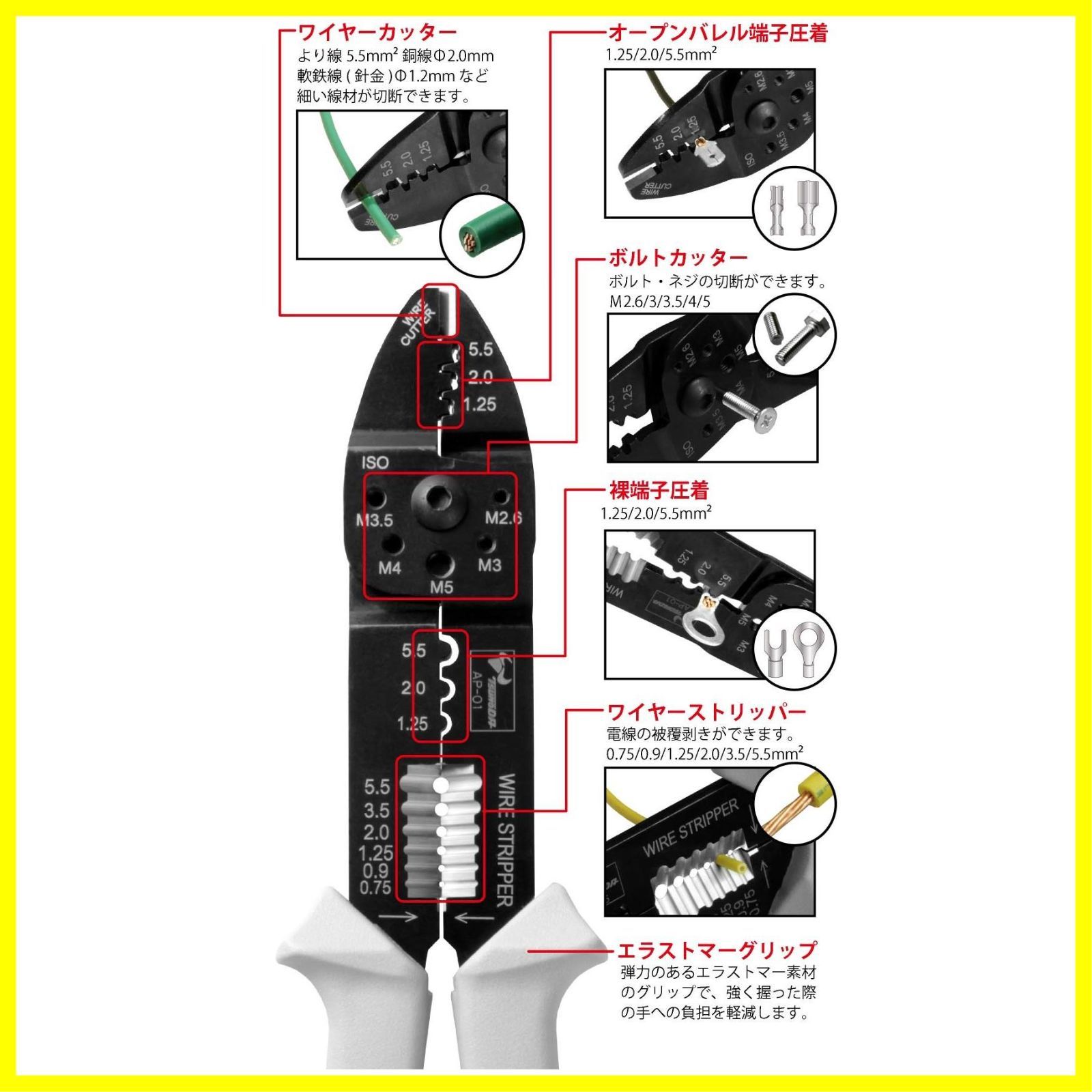 ツノダTSUNODA) 電工万能ペンチ オープンバレルギボシ)端子・裸圧着端子両用 AP-01