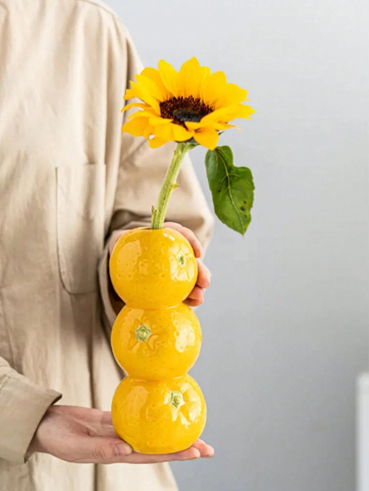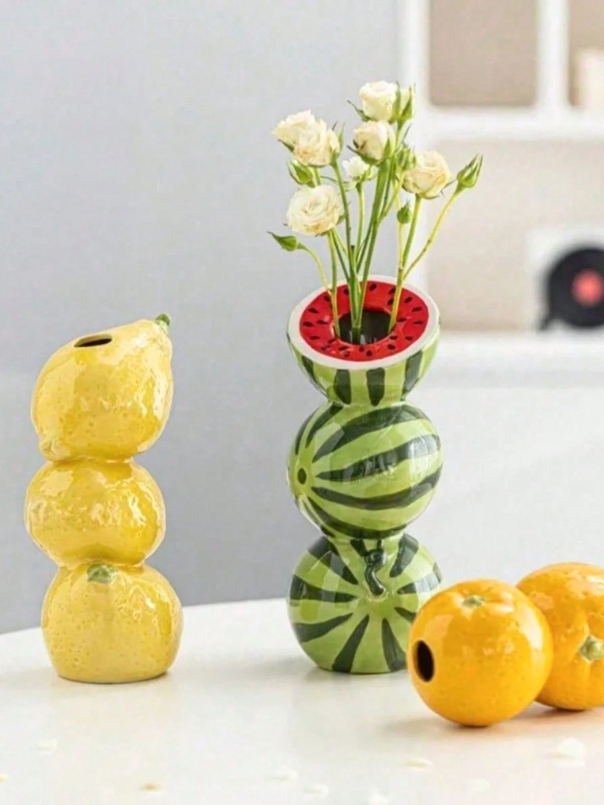 1個 レモン型花瓶、小さな口径のセラミック製花瓶、クリエイティブなフルーツデザイン、リビングルーム用、エレガントなテーブルトップの装飾、ホームデコレーション、ルームデコレーション、ガラス花瓶