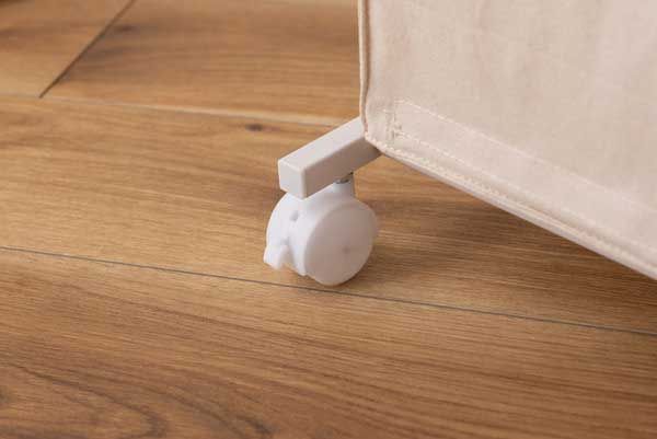 ●バスケットを引っ掛けるバーにはストッパーが付いているので、ズレ落ちる心配なし。