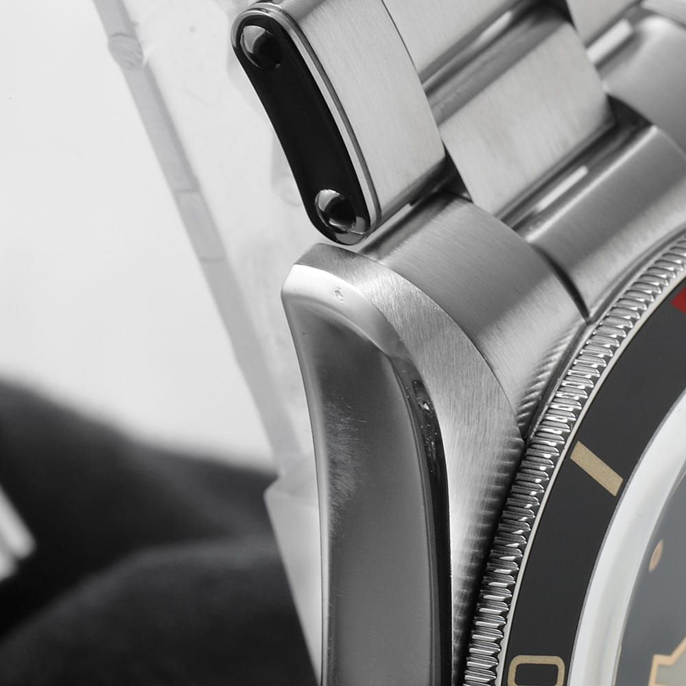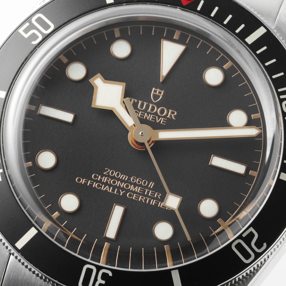■モデル情報:人気モデルヘリテージ ブラックベイの2018年発表モデルです。ドーム型ガラスを備えた200m防水ケースに、COSC認定自社製パワーリザーブ70時間のキャリバーMT5402を搭載。前作の100mから200m防水になり、ブレスサイドのリベットによって味わい深いタイムピースに仕上がりました。