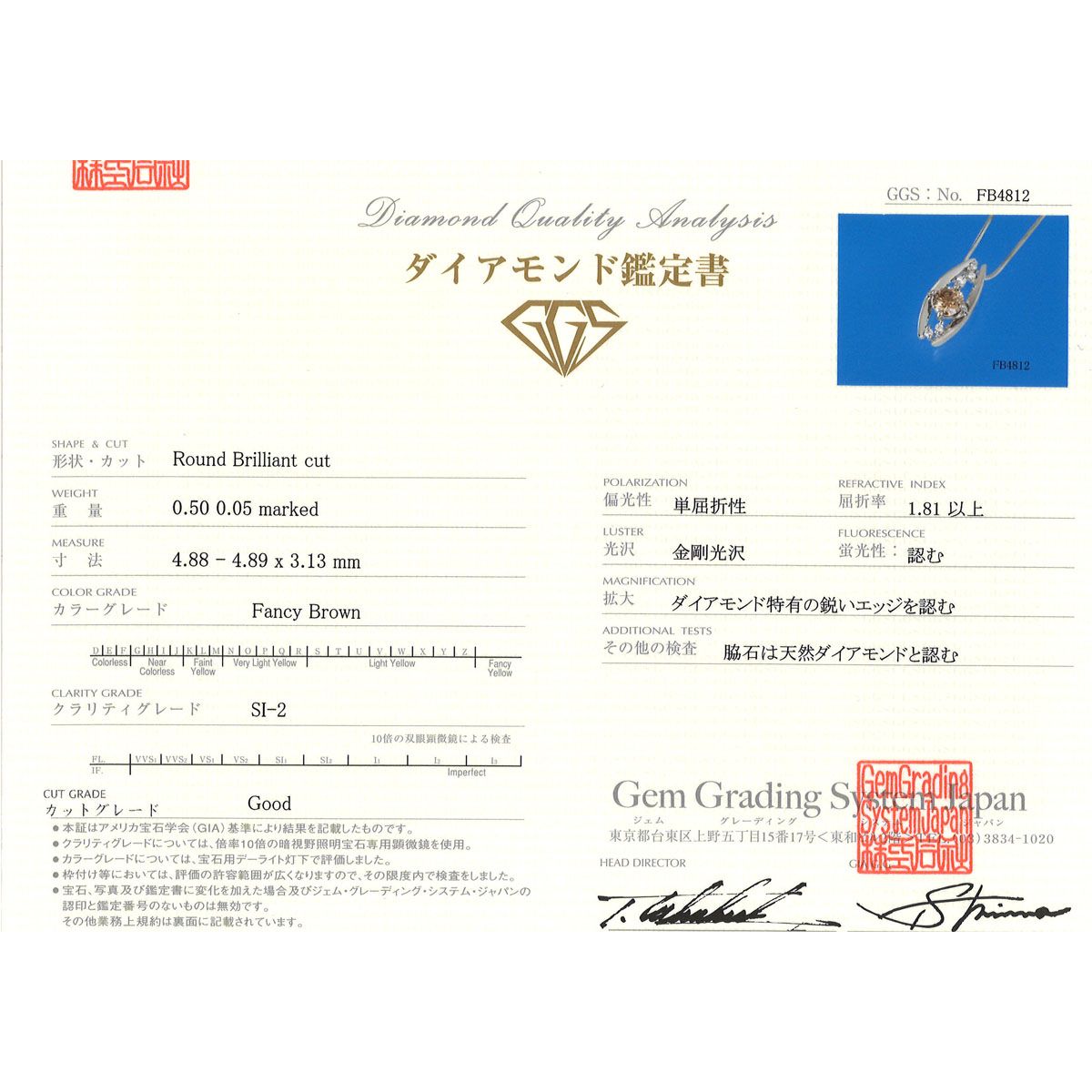クラリティ:SI2 カラー:Fancy Brown カット:Good