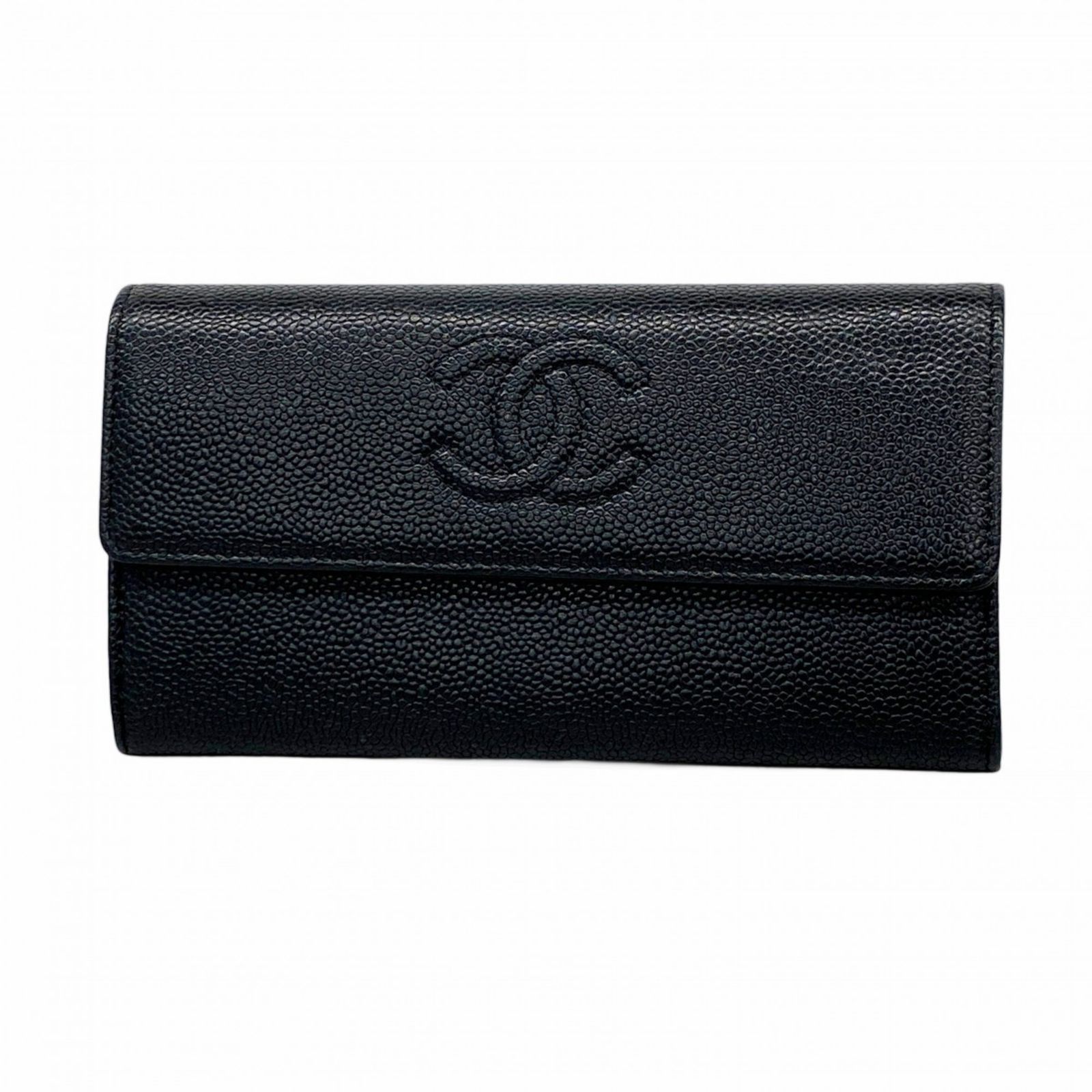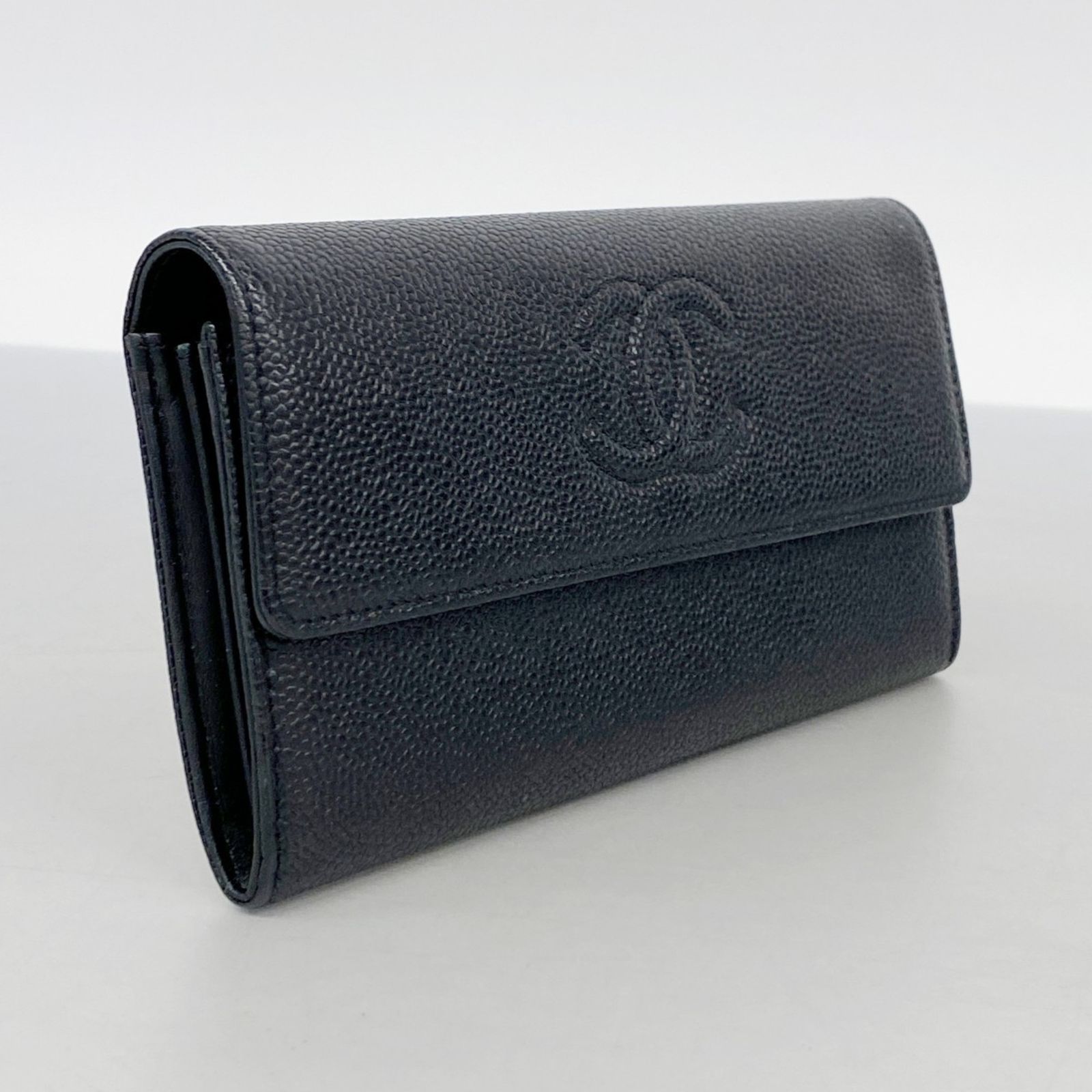 シャネル(Chanel) シャネル 長財布 キャビアスキン ブラック レディース P1873696