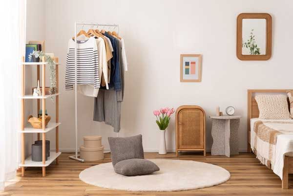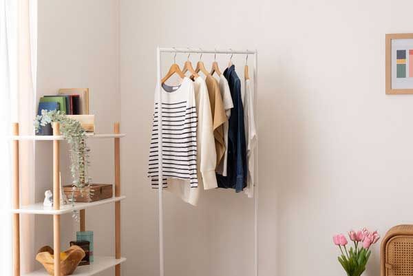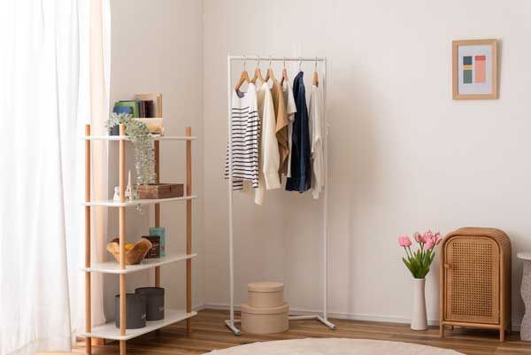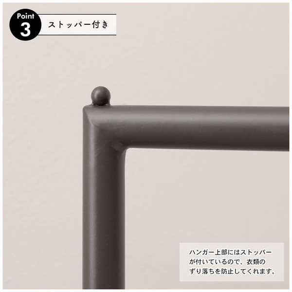 お部屋の雰囲気を選ばず、シャープでスッキリとしたデザインは、掛けられた洋服を品よく見せてくれます。