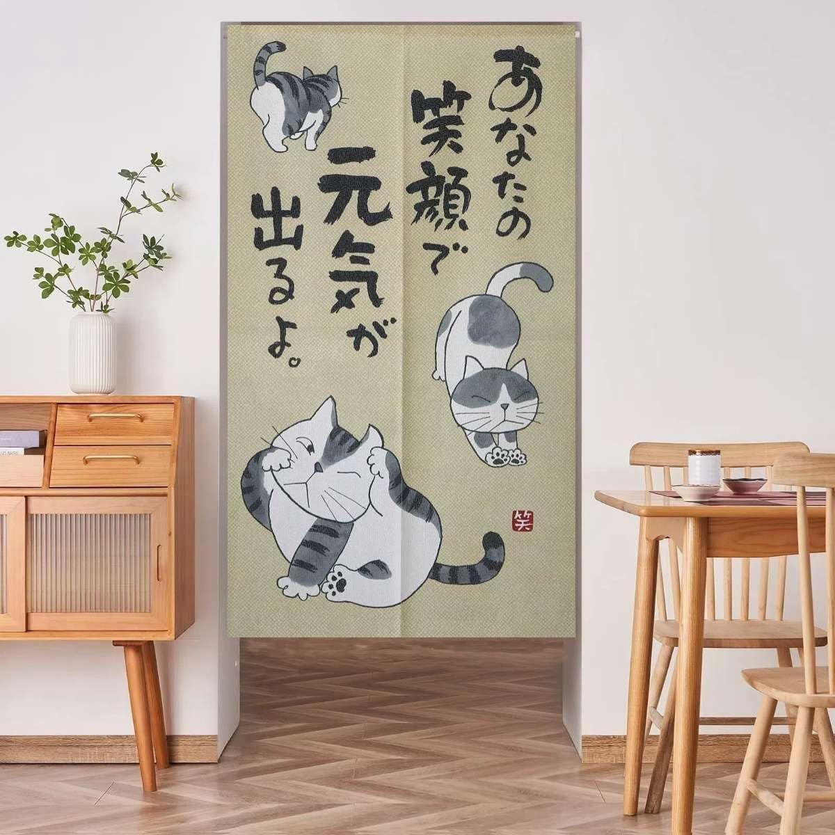 のれん 暖簾 おしゃれ 和風 間仕切り カーテン 170センチ ロング 玄関 階段 廊下 リビング 脱衣所 お風呂 戸口 目隠し 遮光 プライバシー保護 ドア 仕切り (太い猫, 幅85cm x丈170cm)NR1254