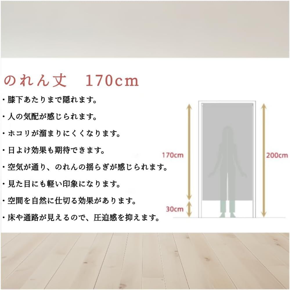 【用途】リビング、玄関、階段、廊下、脱衣所の間仕切りや目隠しにいろいろな場所、いろいろなシーンでお使いいただけます品の良いのれんです。プライバシーも守れます。お部屋のインテリアとしてはもちろん、飲食店、居酒屋等の商業施設によく合うのれんです。海外のお土産、プレゼントにも喜ばれます。