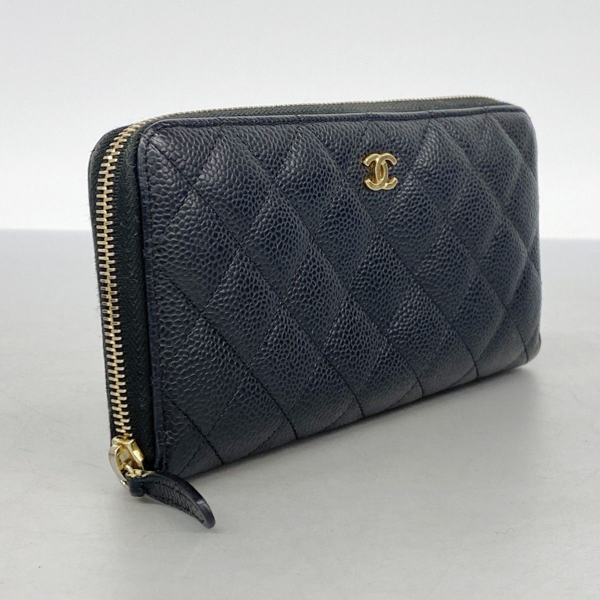 【5pb2781】シャネル 長財布 マトラッセ キャビアスキン ブラック ゴールド金具【中古】レディース