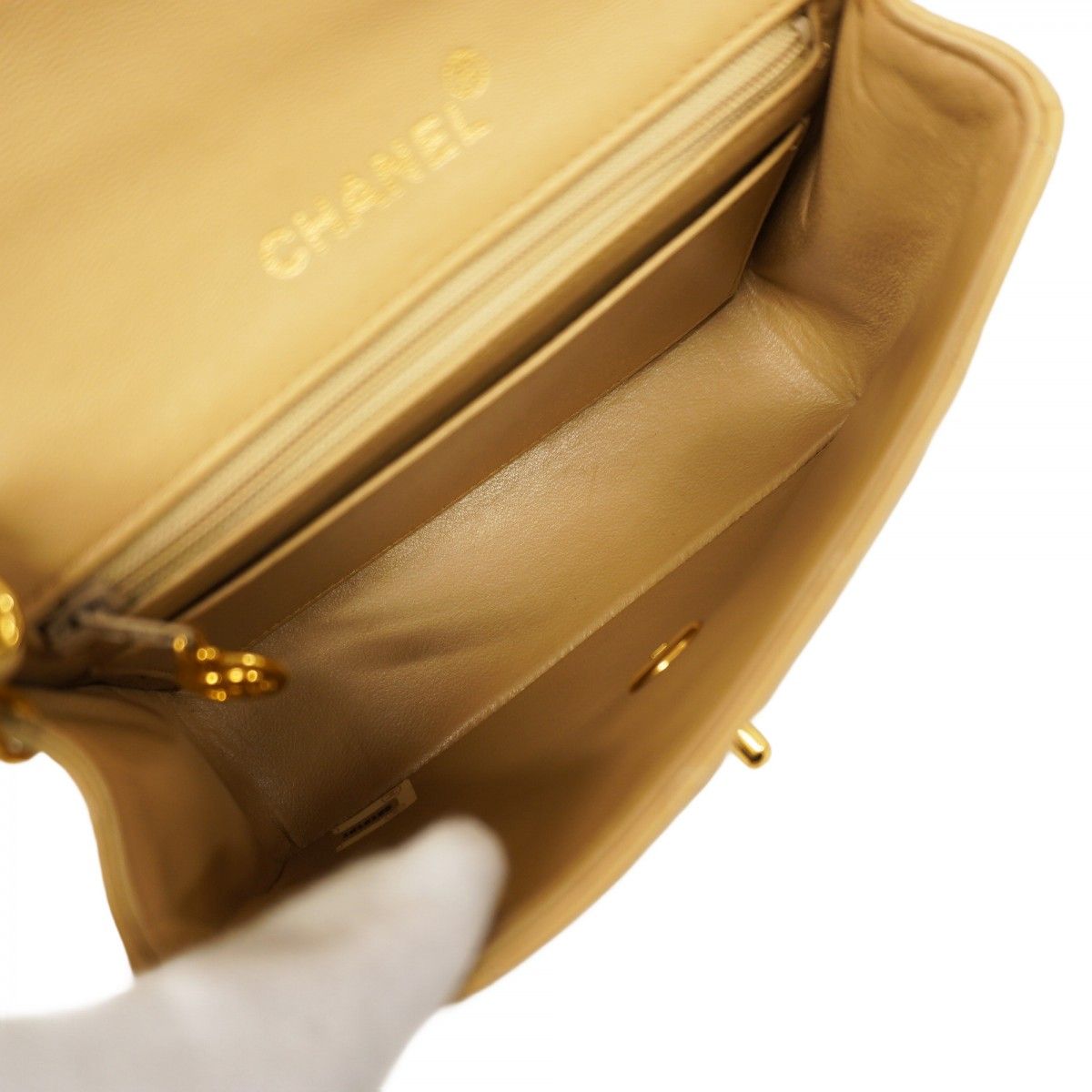 【5pb2948】シャネル ショルダーバッグ ミニマトラッセ チェーンショルダー ラムスキン ベージュ ゴールド金具【中古】レディース