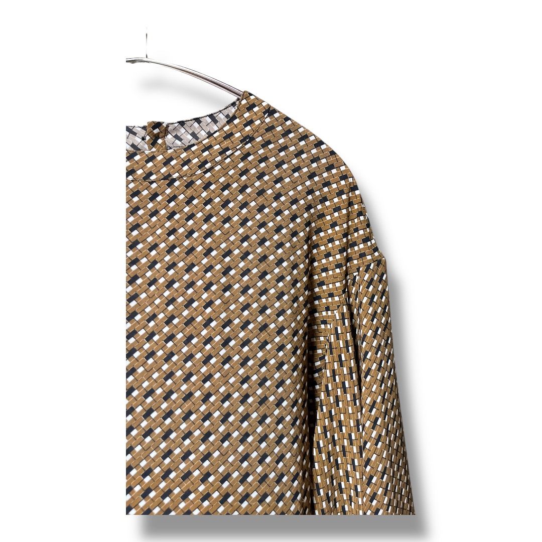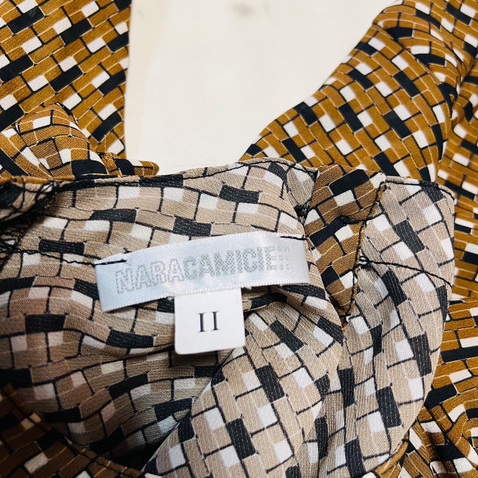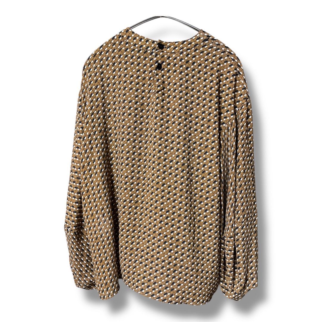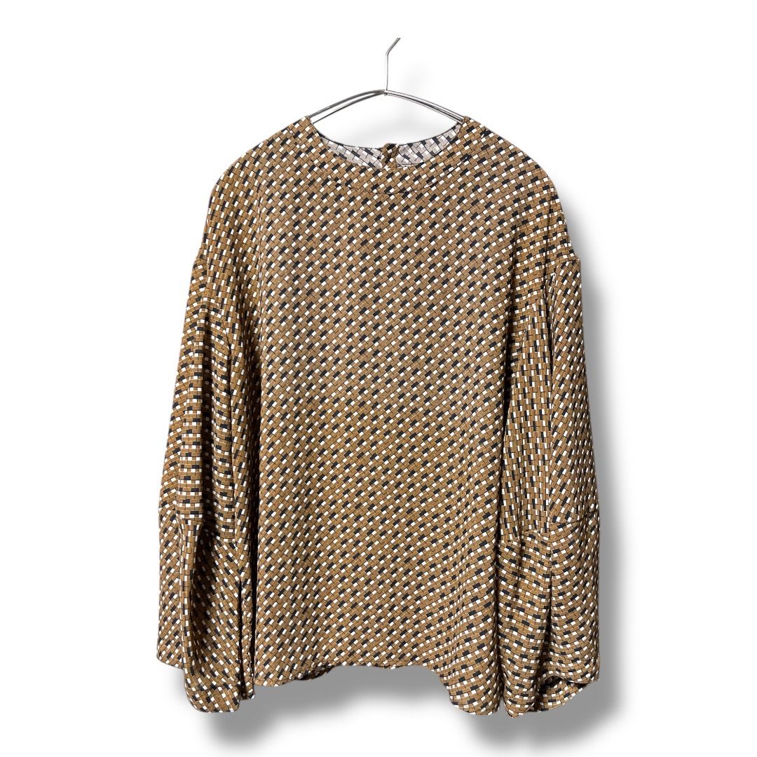 NARACAMICIE ナラカミーチェ ジョーゼット幾可プリント 変形スリーブブラウス 定価24200円 ボリュームスリーブ プルオーバー レディース サイズⅡ ブラウン 久喜倉庫店 1 No.K1067
