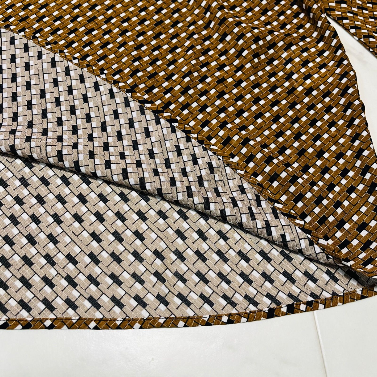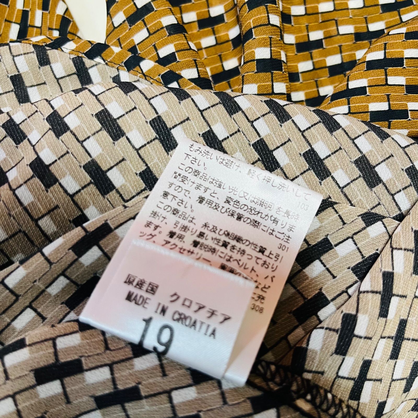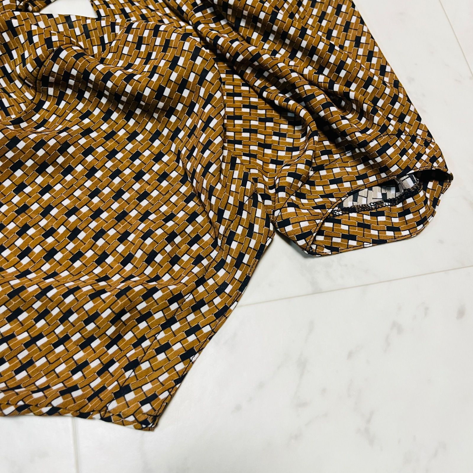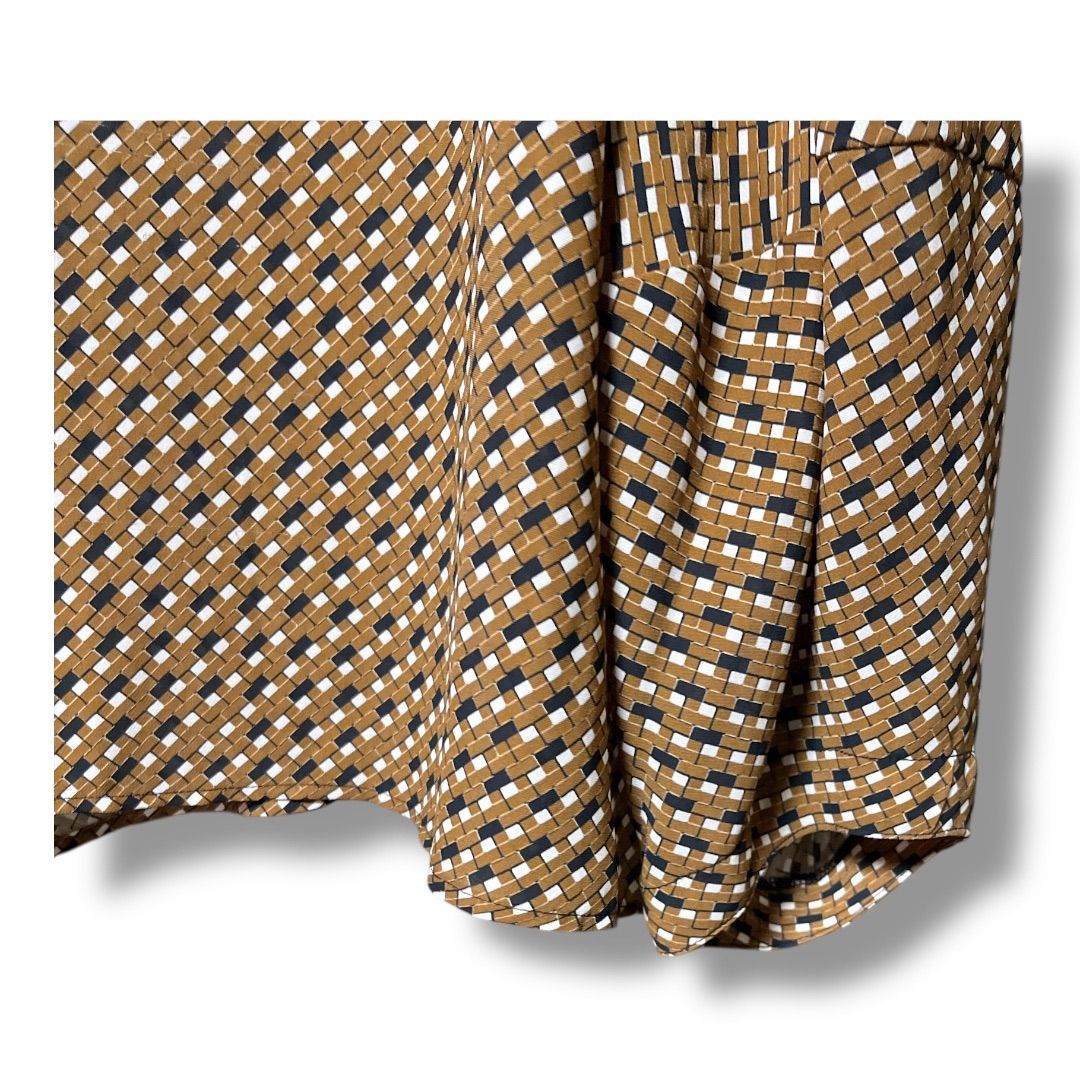 NARACAMICIE ナラカミーチェ ジョーゼット幾可プリント 変形スリーブブラウス 定価24200円 ボリュームスリーブ プルオーバー レディース サイズⅡ ブラウン 久喜倉庫店 1 No.K1067