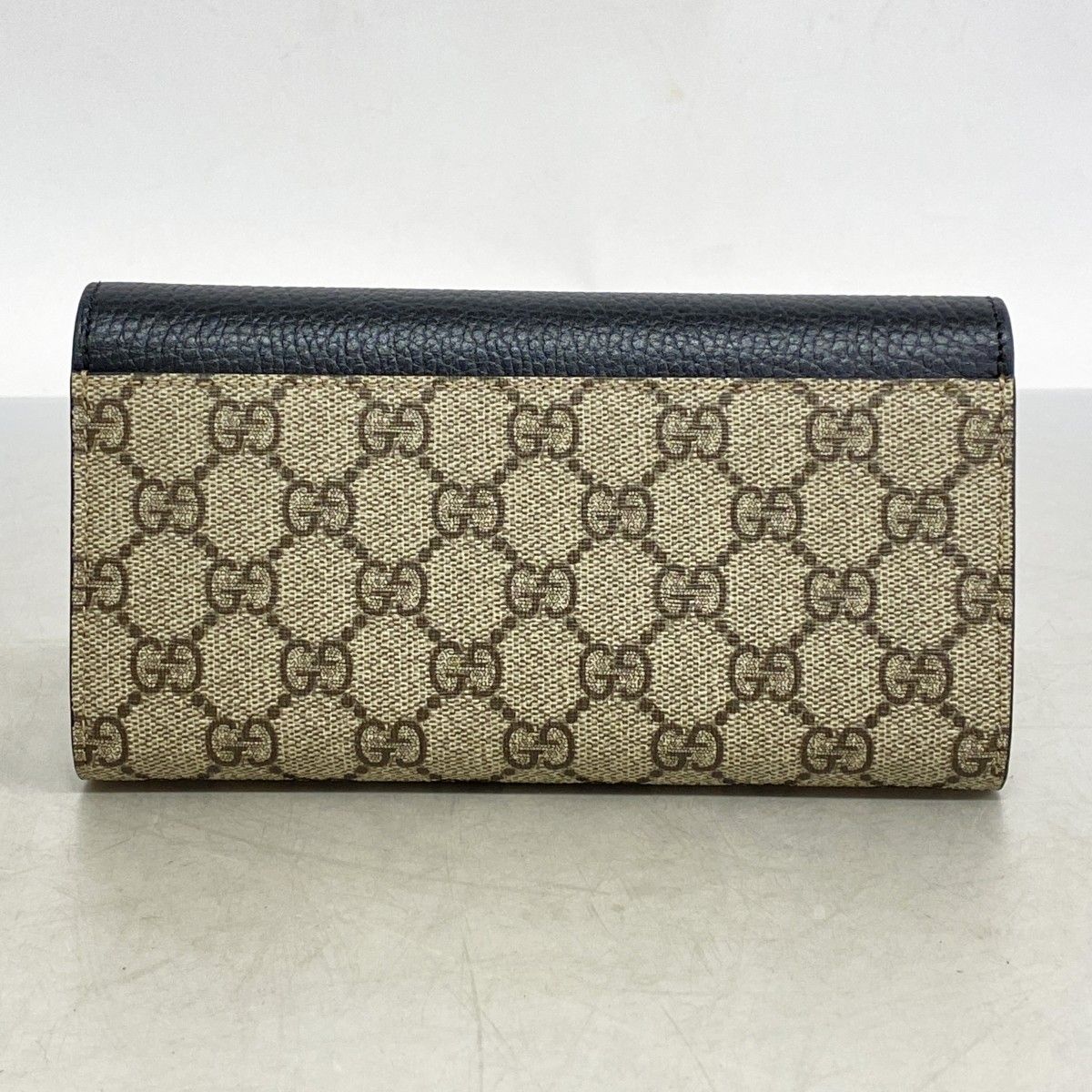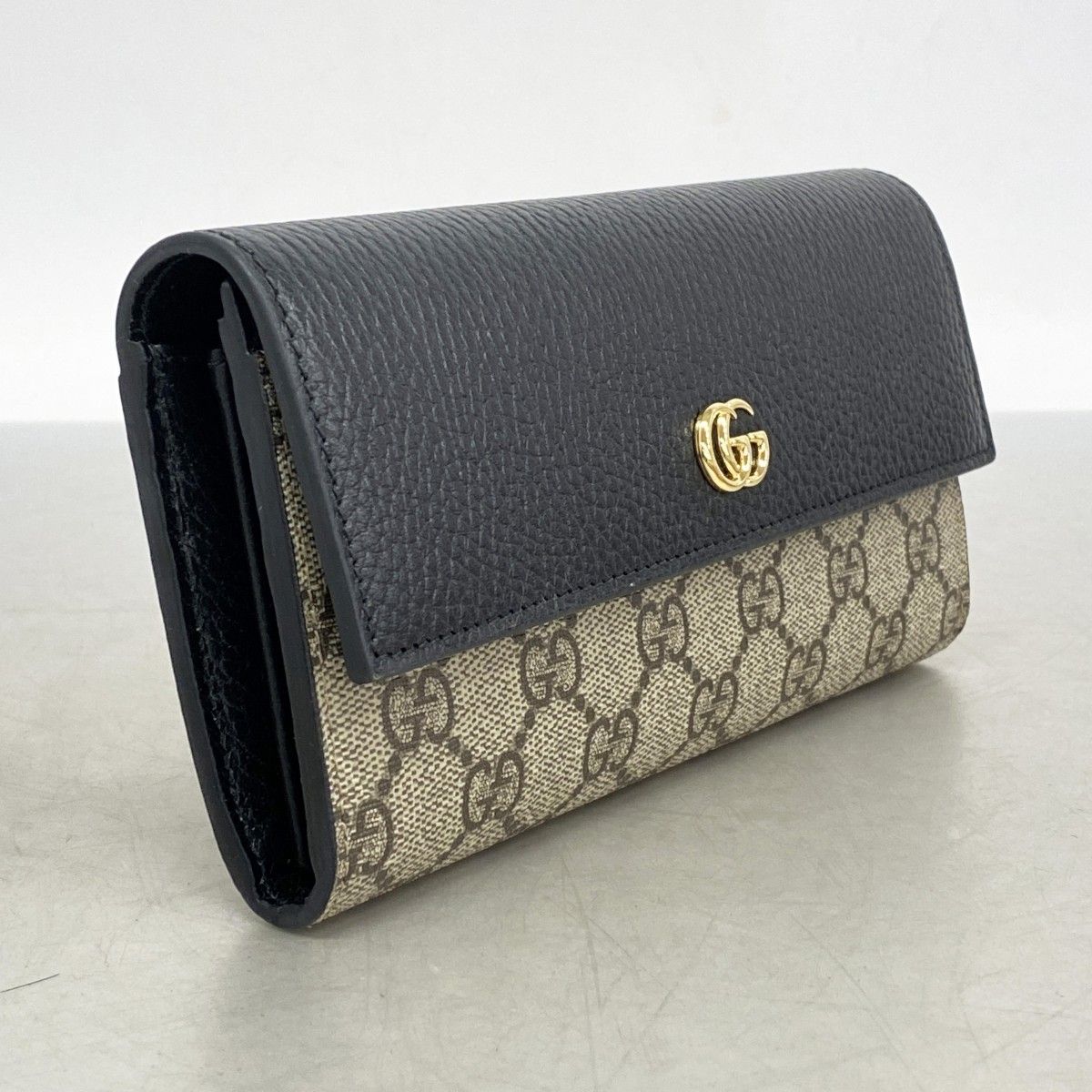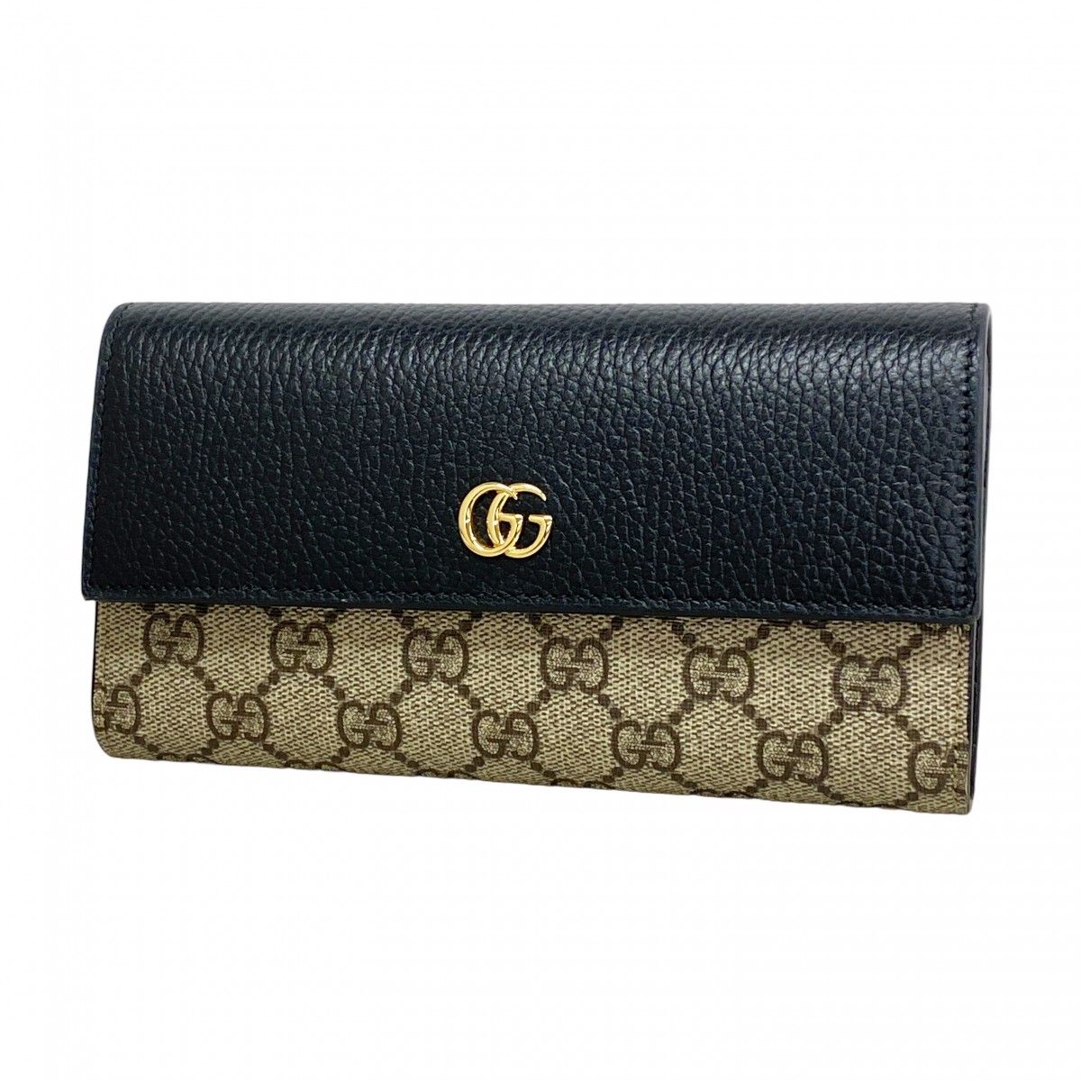 【5pb2977】グッチ 長財布 GGマーモント/GGスプリーム 456116 PVC レザー ベージュ ブラック ゴールド金具【中古】レディース