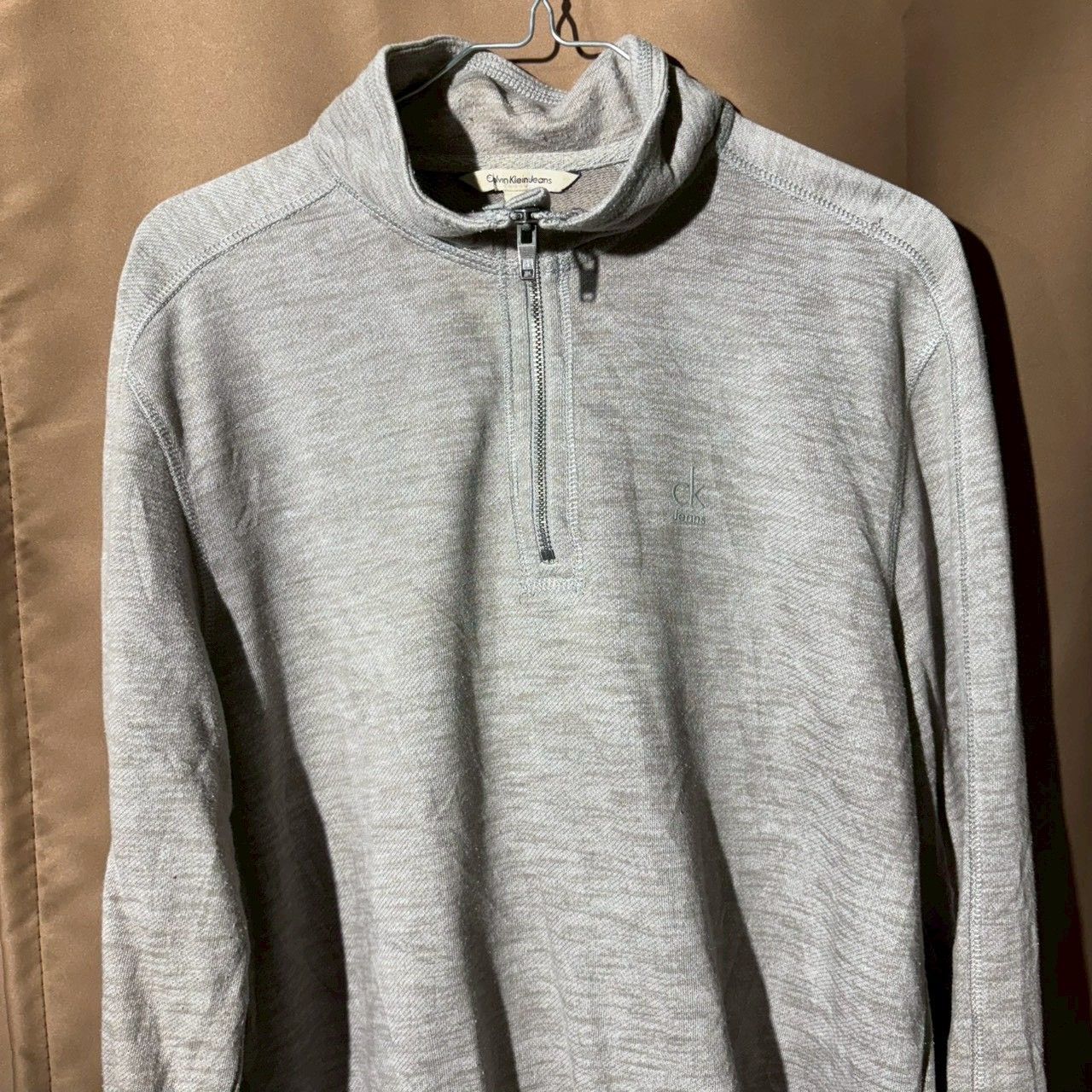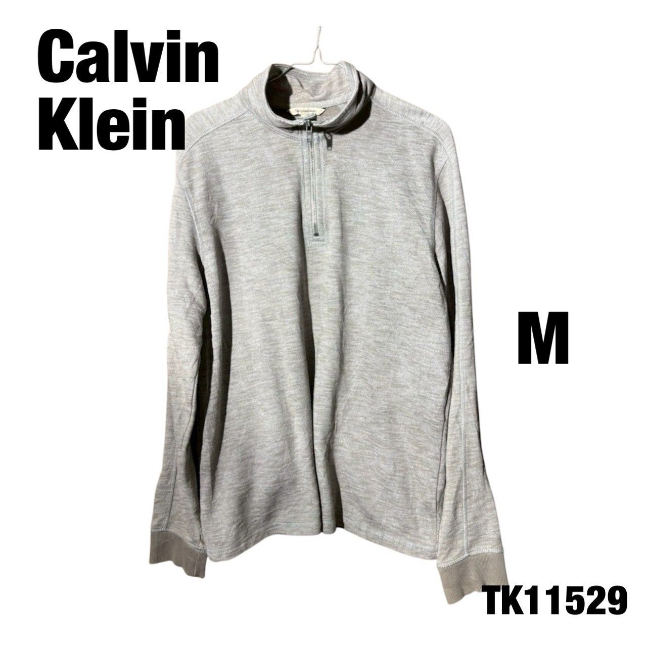 Calvin Klein ライトグレー ハーフジップ トレーナー M シンプル スウェット 無地 秋冬 プルオーバー 古着 TK11529
