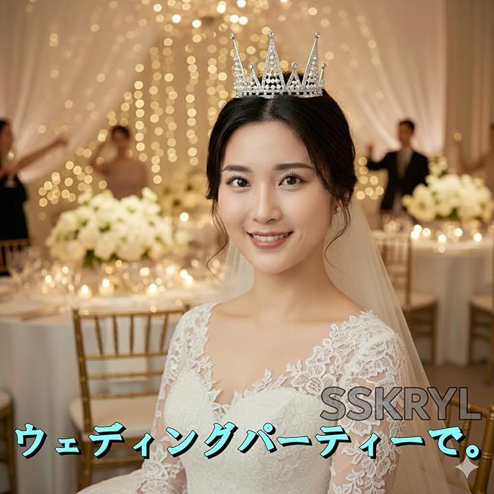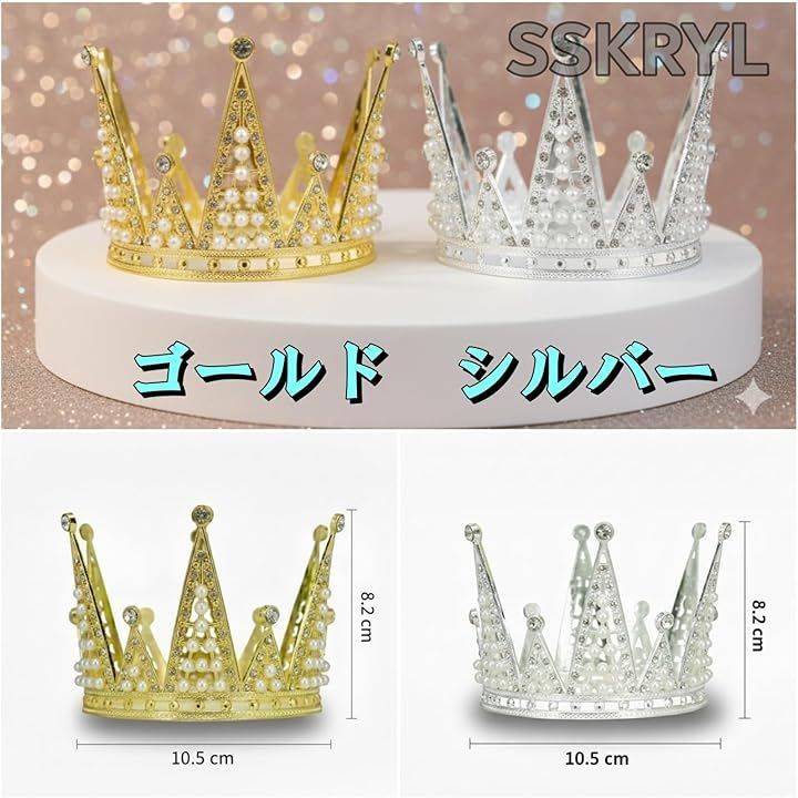 精巧にデザインされたクラウンは、繊細なフェイクパールとキラキラ輝くラインストーンが散りばめられ、ゴージャスな仕上がりです。