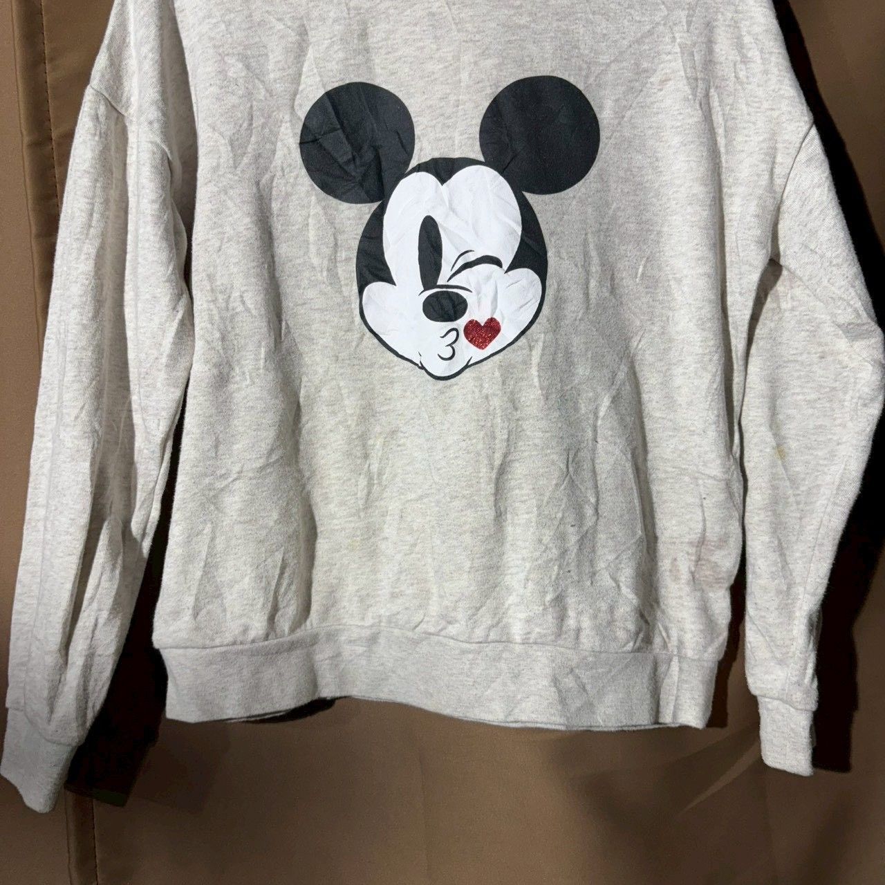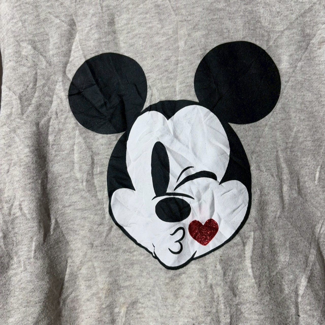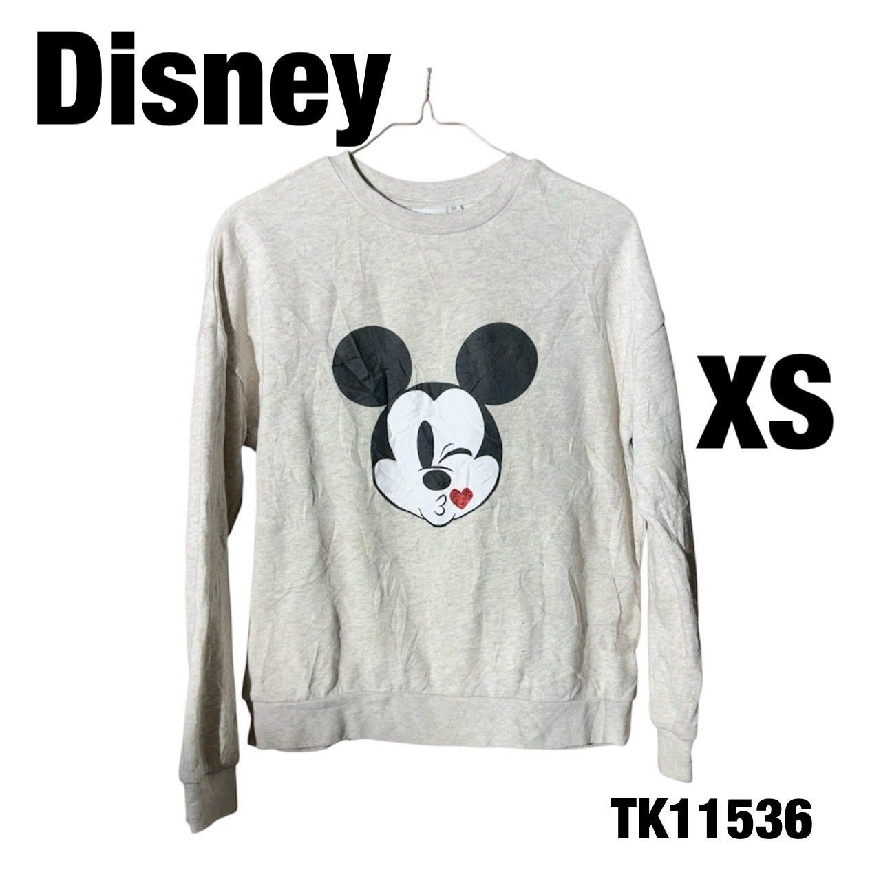 Disney ライトグレー スウェット XS ミッキー トレーナー キャラクター プリント プルオーバー 秋冬 古着 TK11536