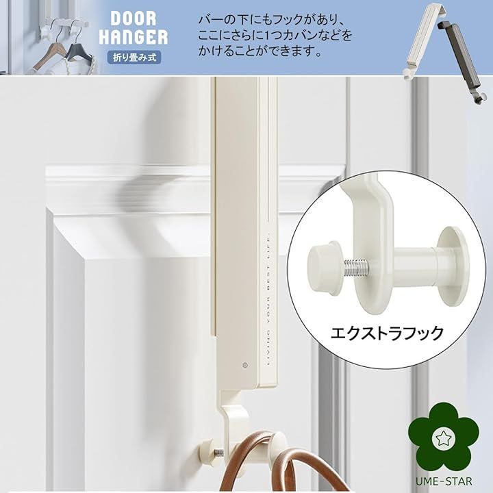 ドアや折れ戸の上部にフックを引っかけて使用するドアハンガーです。