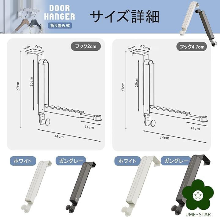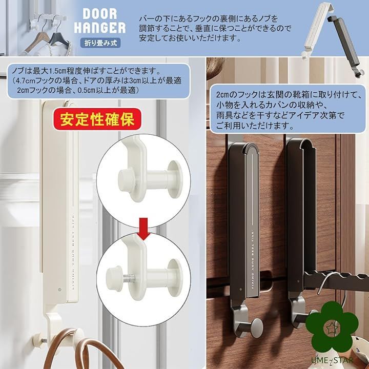 (4.7cmフックの場合、ドアの厚みは3cm以上が最適、2cmフックの場合、0.5cm以上が最適)