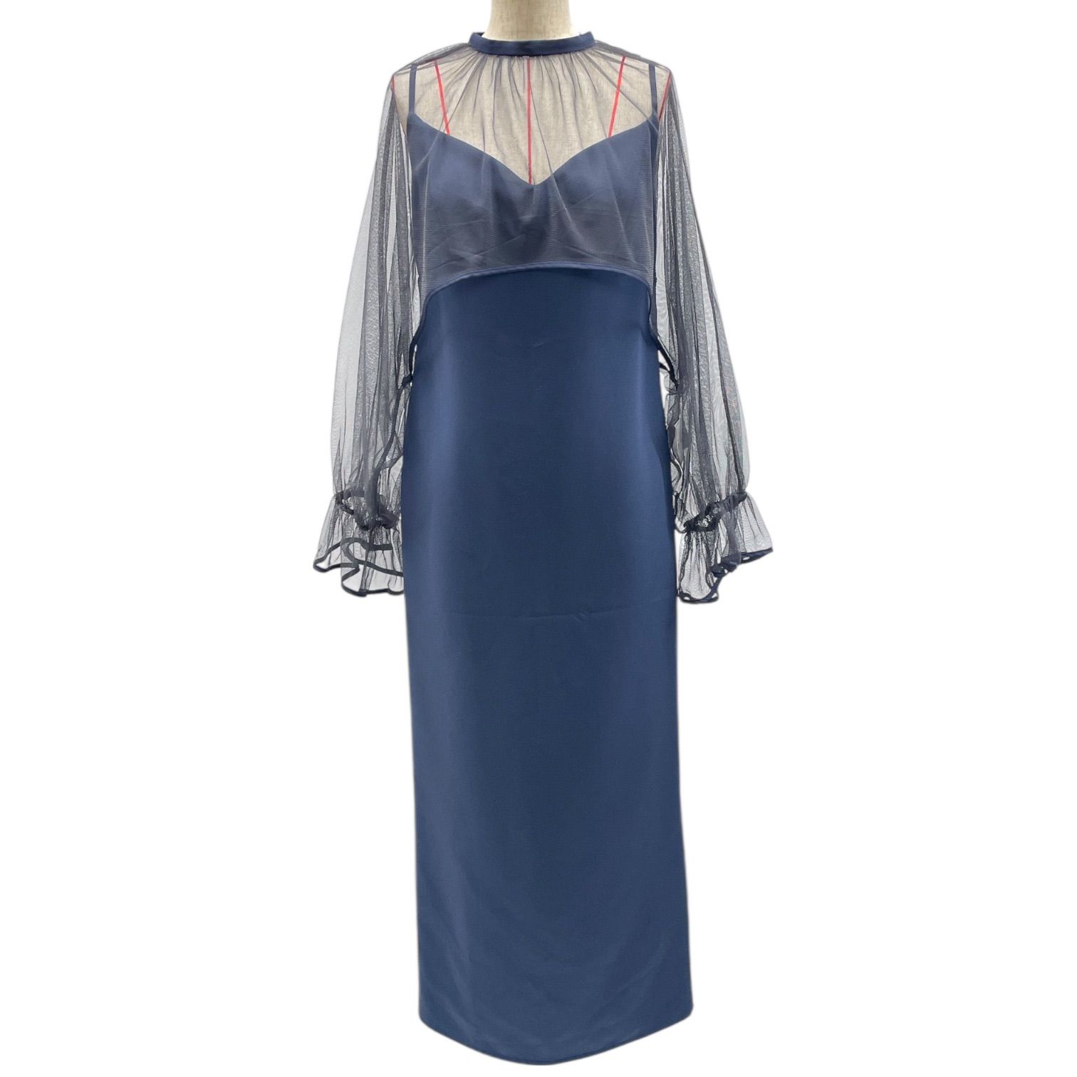 AMERI アメリ MANY WAY AIRY VEIL DRESS ロングワンピース キャミワンピ ドレス チュール フレア袖 レイヤード 02310531112 青 ネイビー Mサイズ レディース 通年 ゴーゴー古着マルイ北千住店 23 No.1416