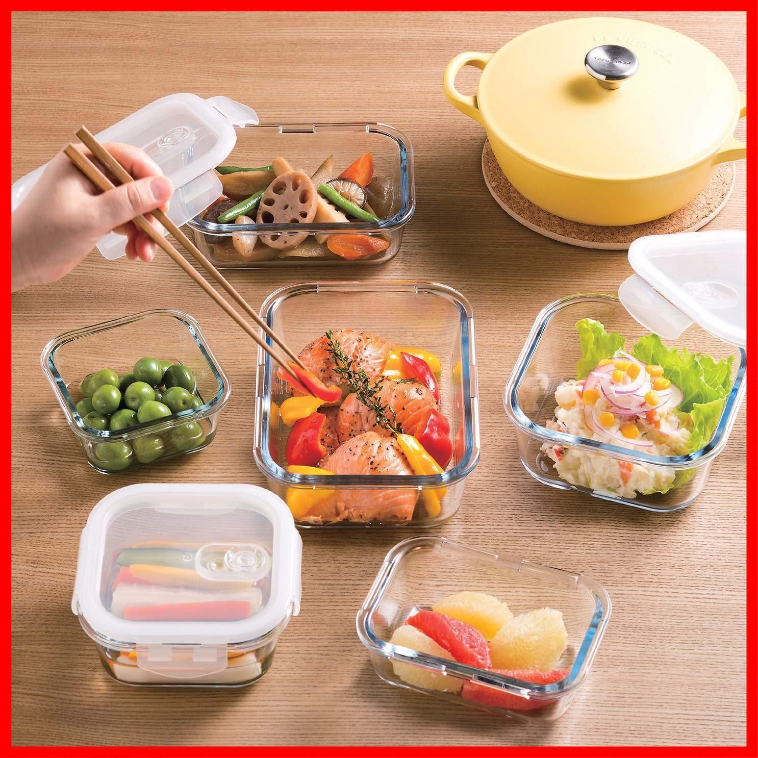 素材・材質:容器=耐熱ガラス、蓋=ポリプロピレン、シリコン、ポリスチレン