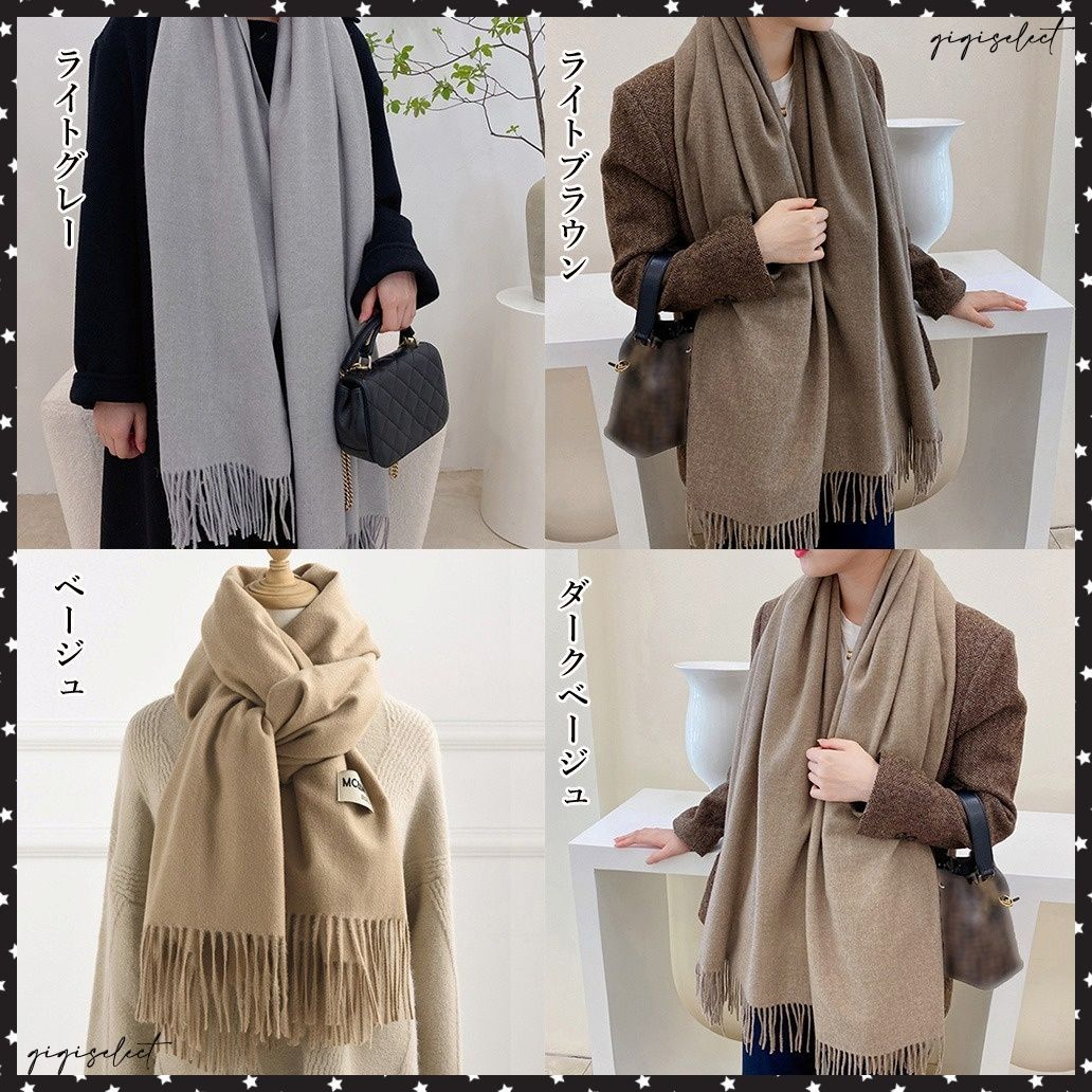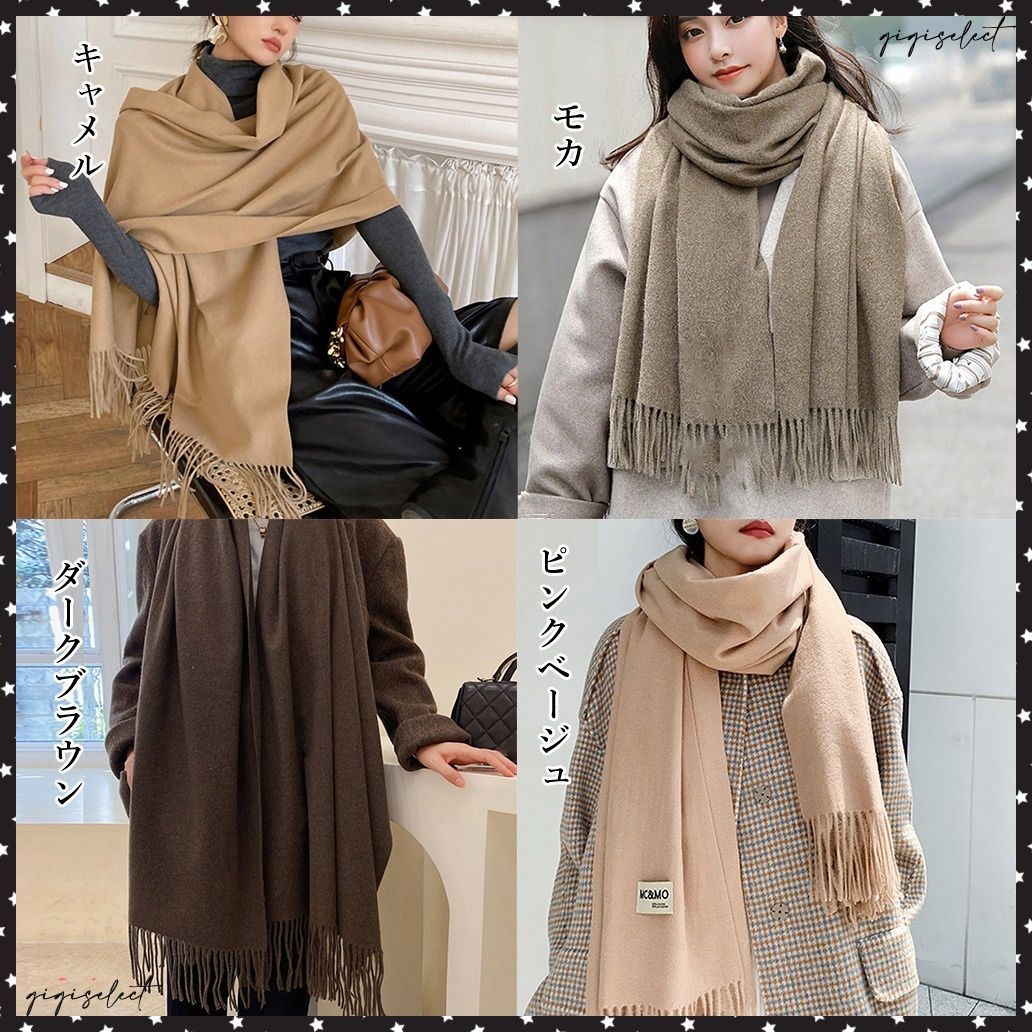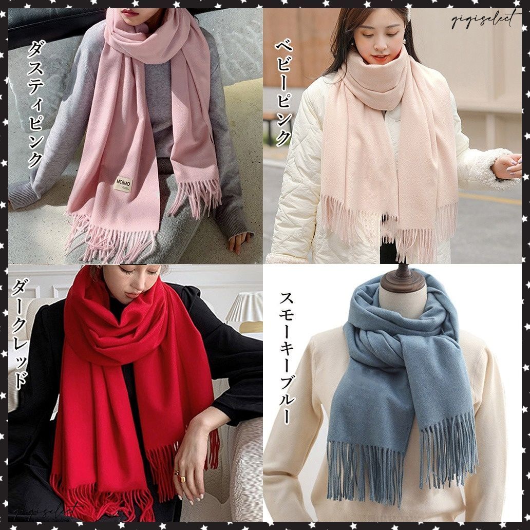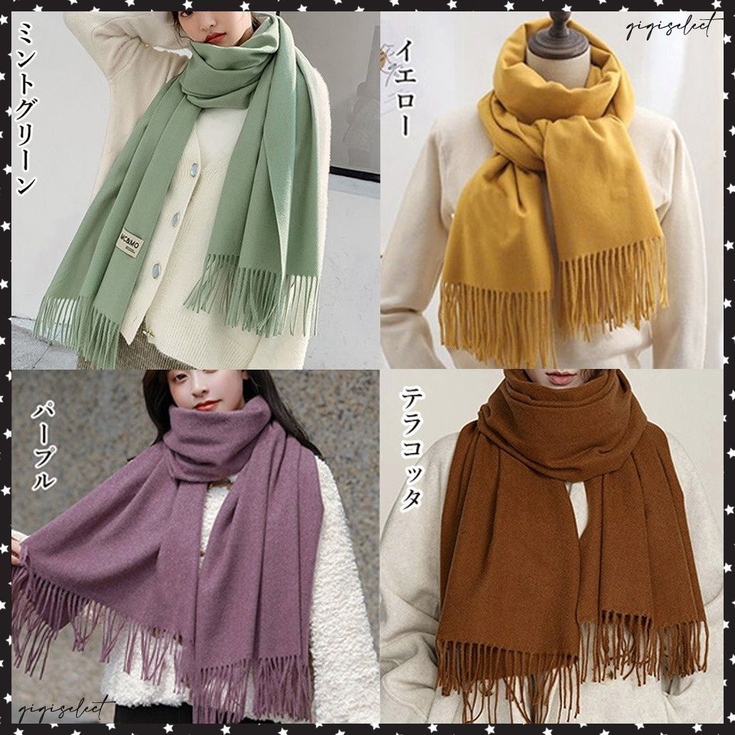 レディース ふんわり フリンジストール リバーシブル 秋冬 ロング スカーフショール かわいい マフラー 無地厚手 韓国