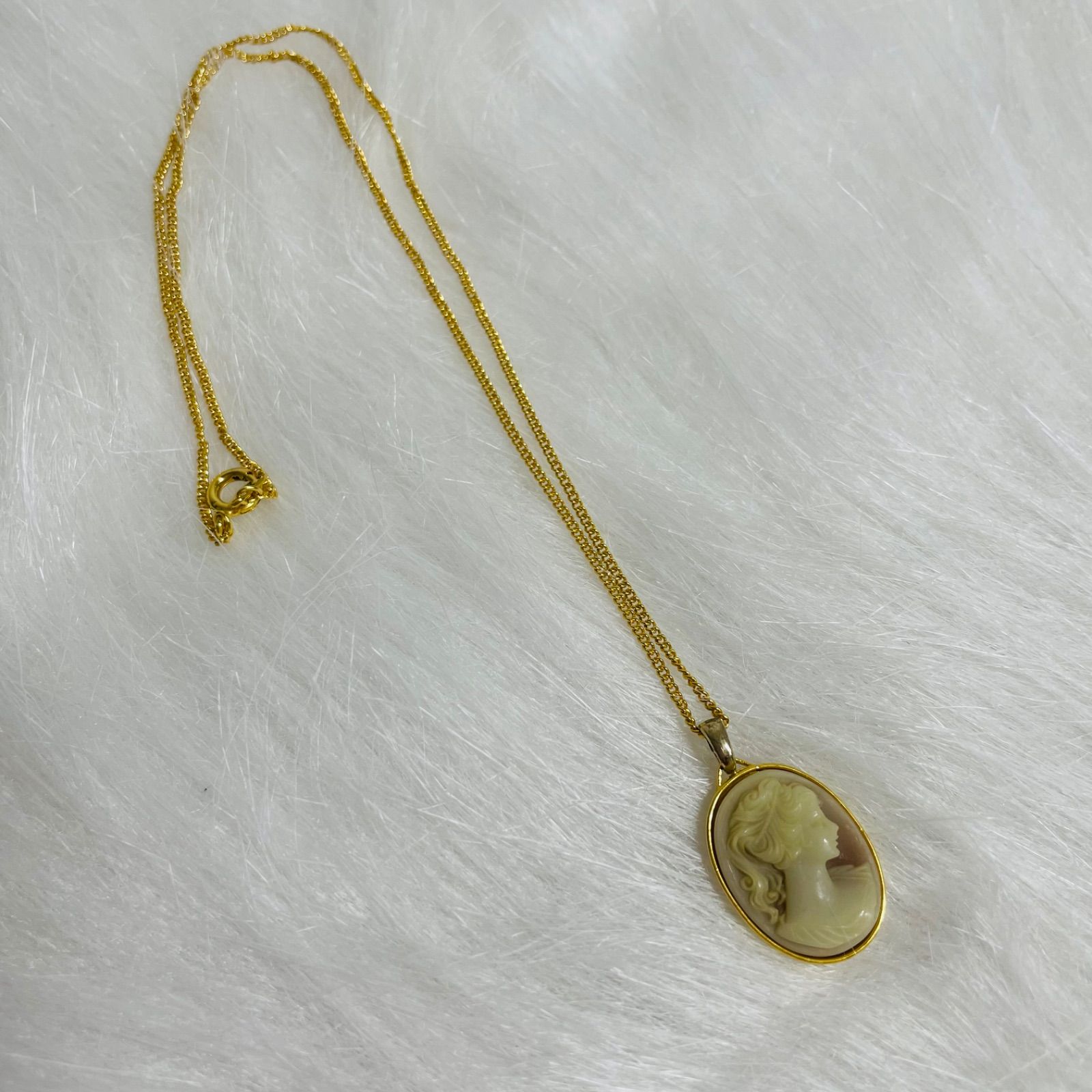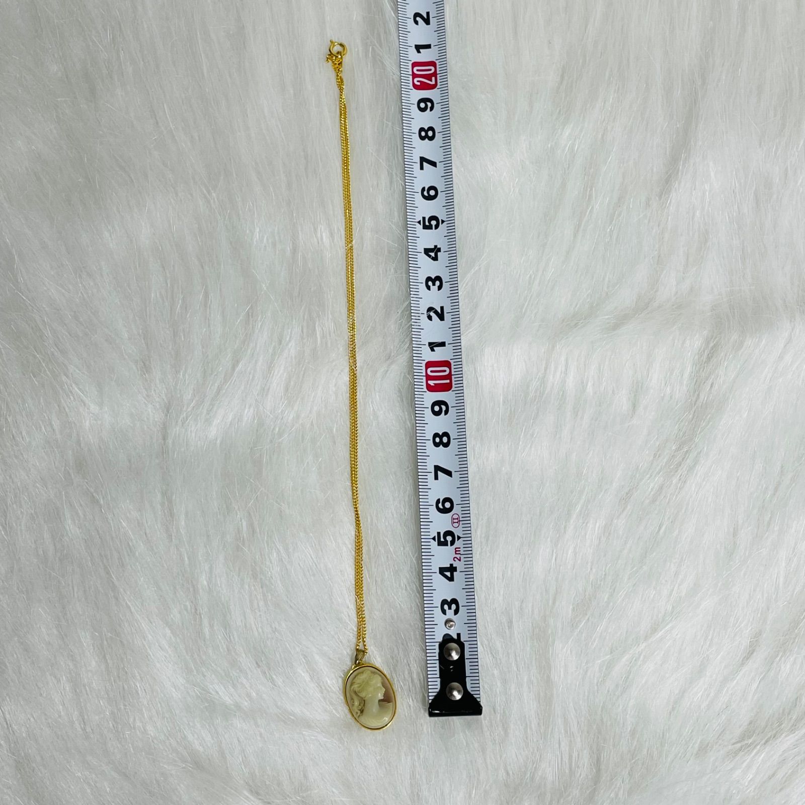 クラシカルな女性の横顔が美しく浮かび上がる、カメオ風デザインのネックレスです。
