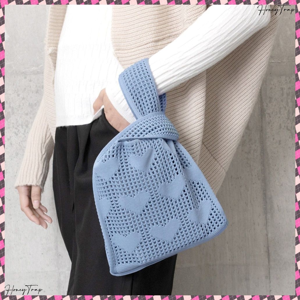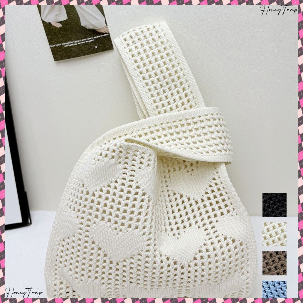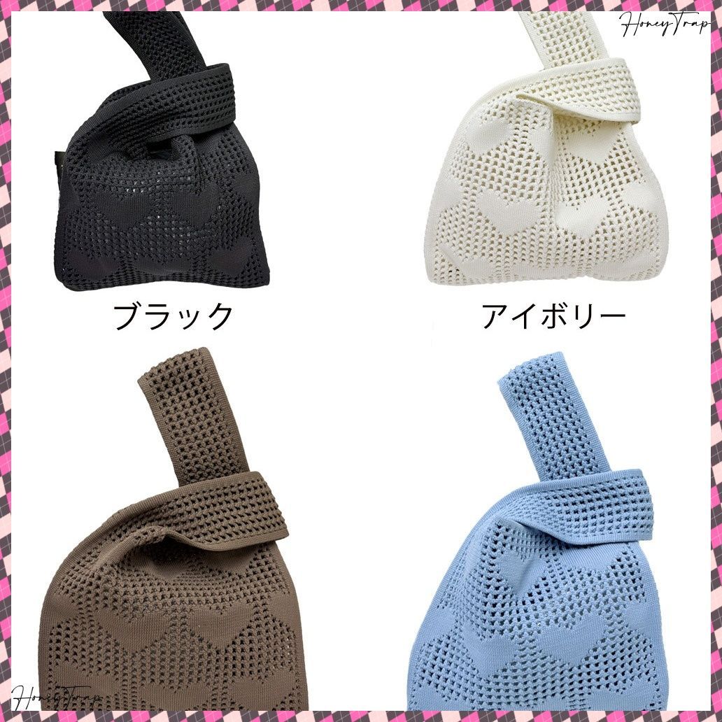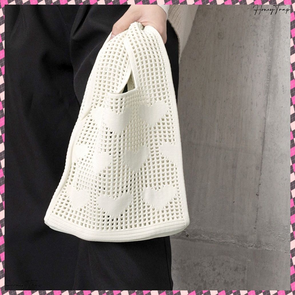 ニットバッグ 軽量 ミニトート 韓国風 折り畳める鞄 小さめ 大人可愛い ワンハンドルバッグ ニット編みかばんナチュラル