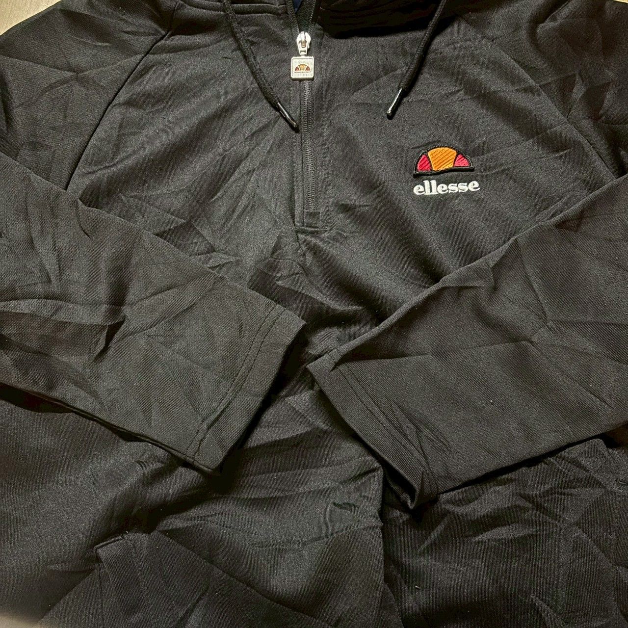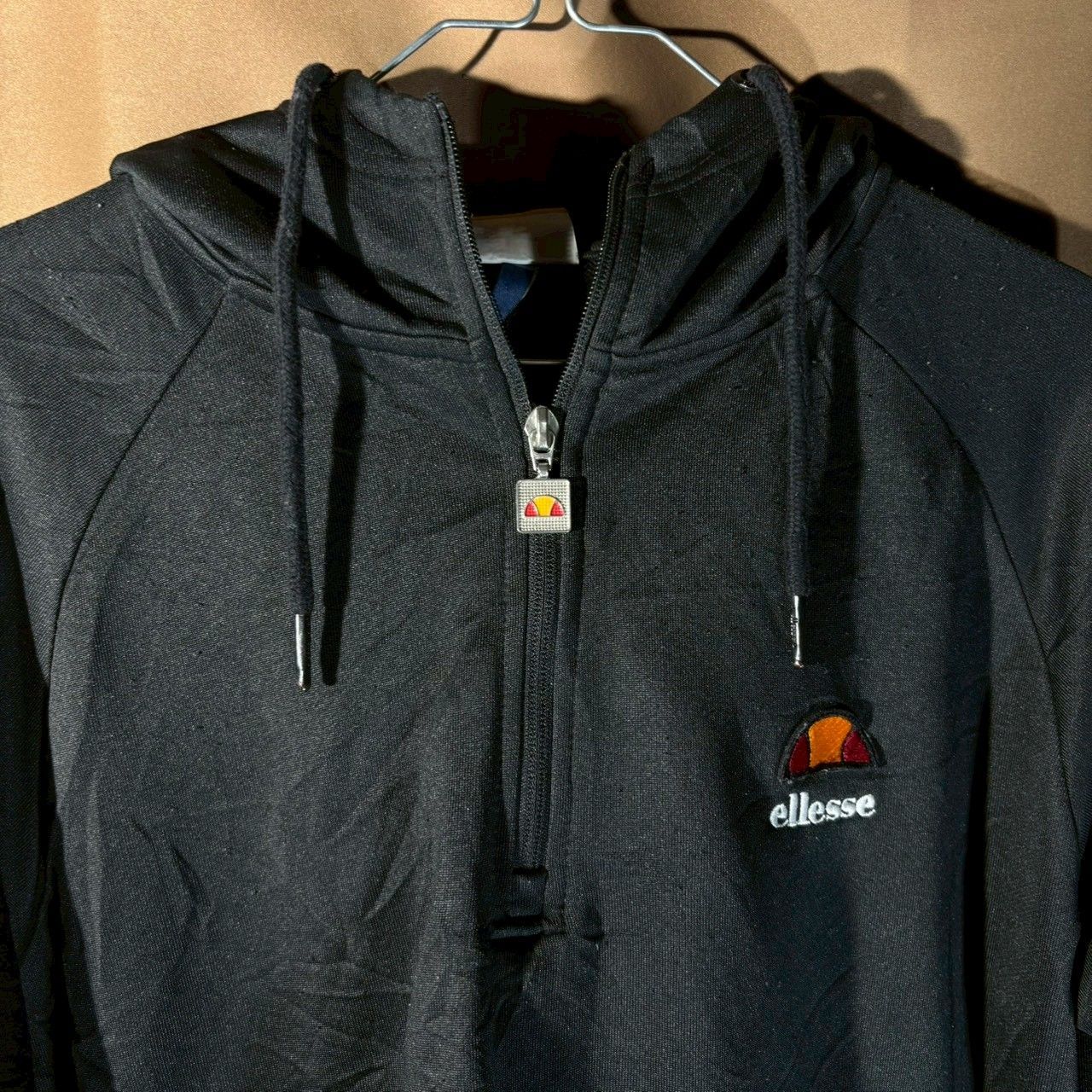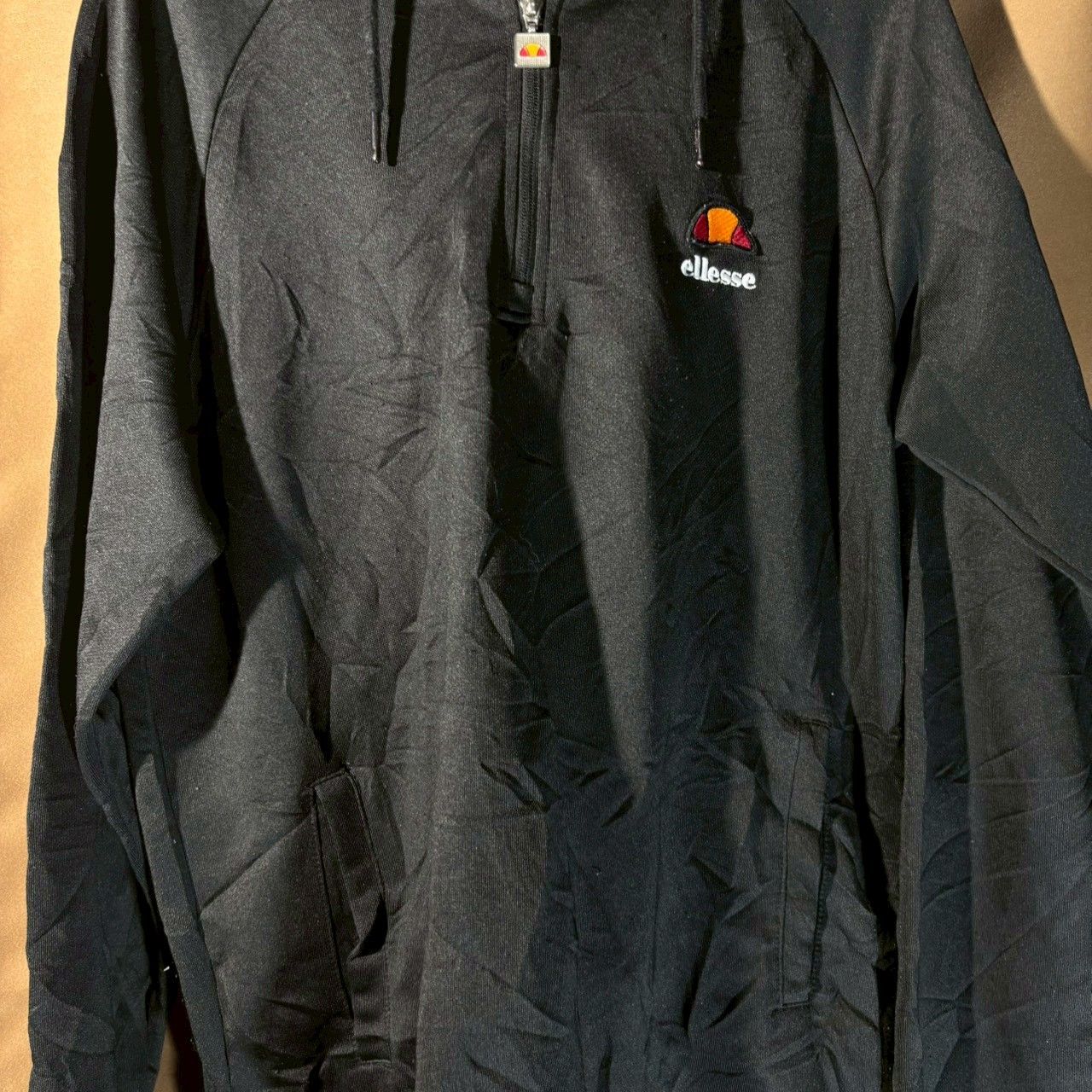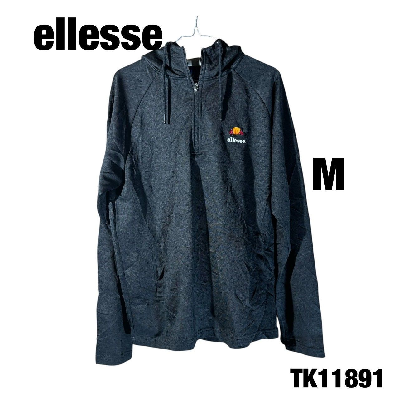 ellesse ブラック ハーフジップ ジャージ M ワンポイント シンプル ロゴ プルオーバー 秋冬 古着 TK11891