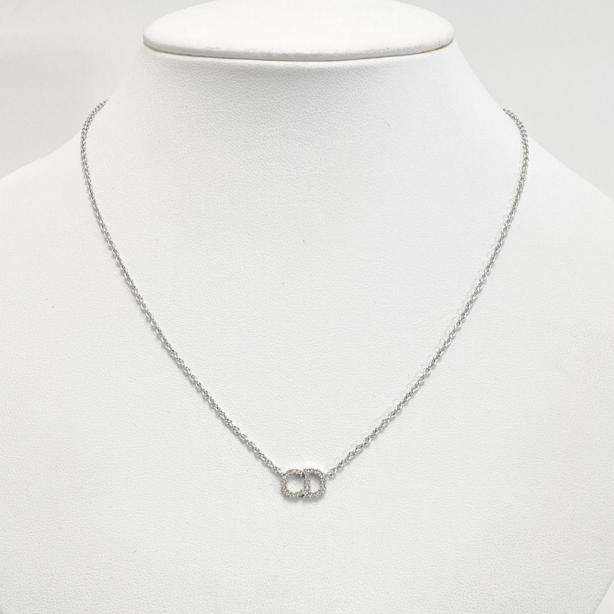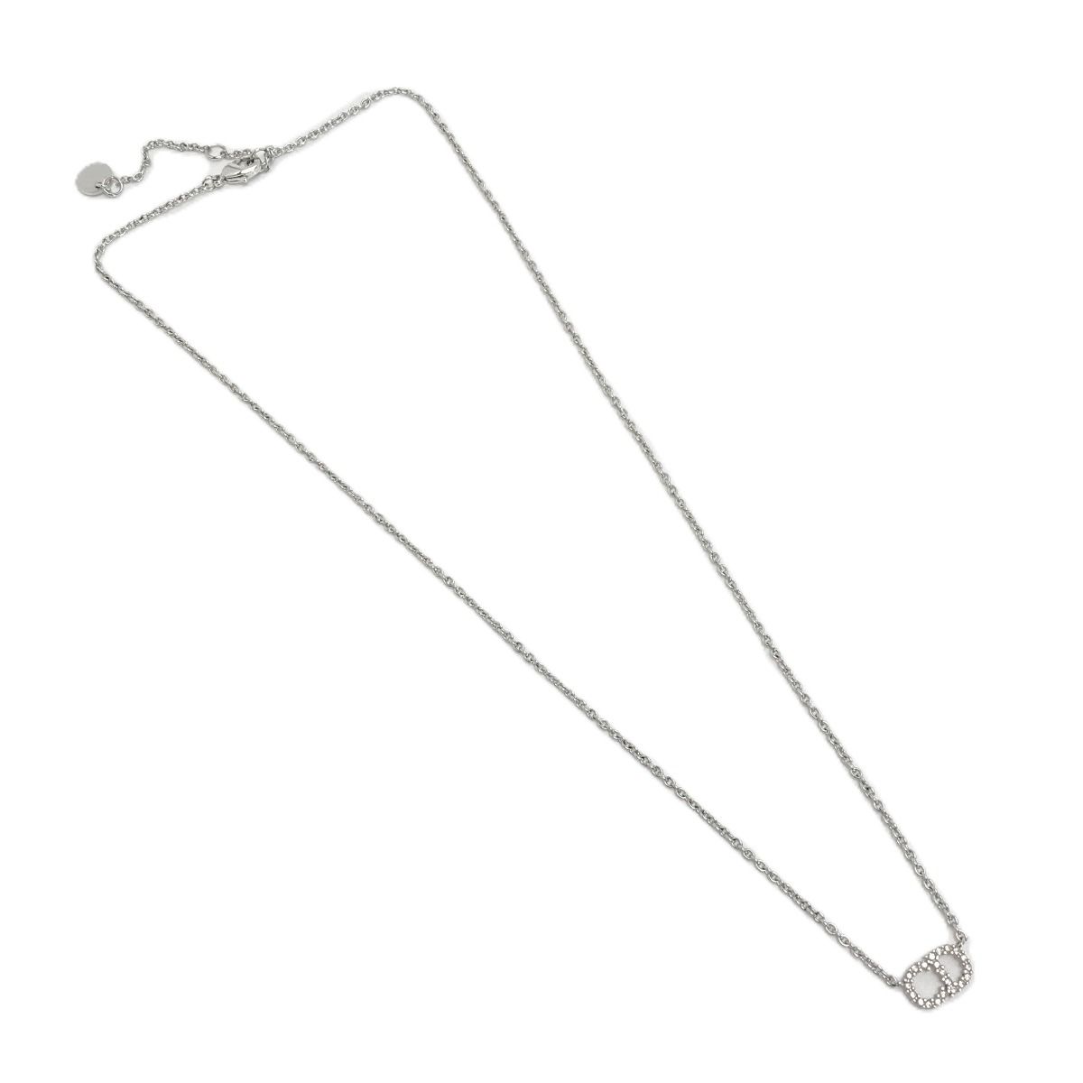 【商品名】中古 Christian Dior クリスチャンディオール Clair D Lune CDロゴ ラインストーン ネックレス シルバー GP 箱・布袋有