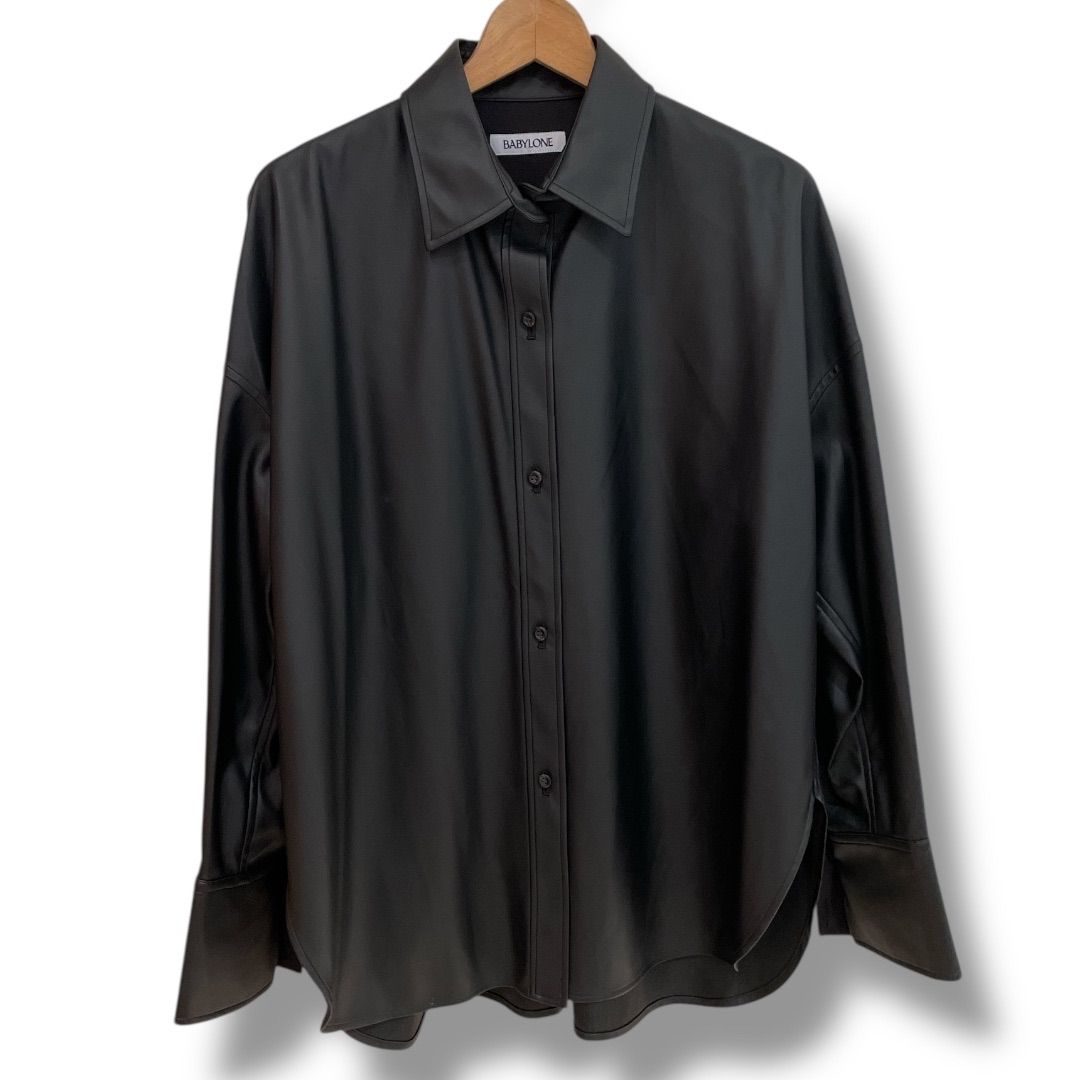 BABYLONE×YUI YANAGIHASHI バビロン 柳橋唯さんコラボ バックタックオーバーシャツ 2450010347 2024年製 フェイクレザー 日本製 ブラック 黒 フリーサイズ レディース 秋 ゴーゴー古着セントラルパーク名古屋店NO.1646
