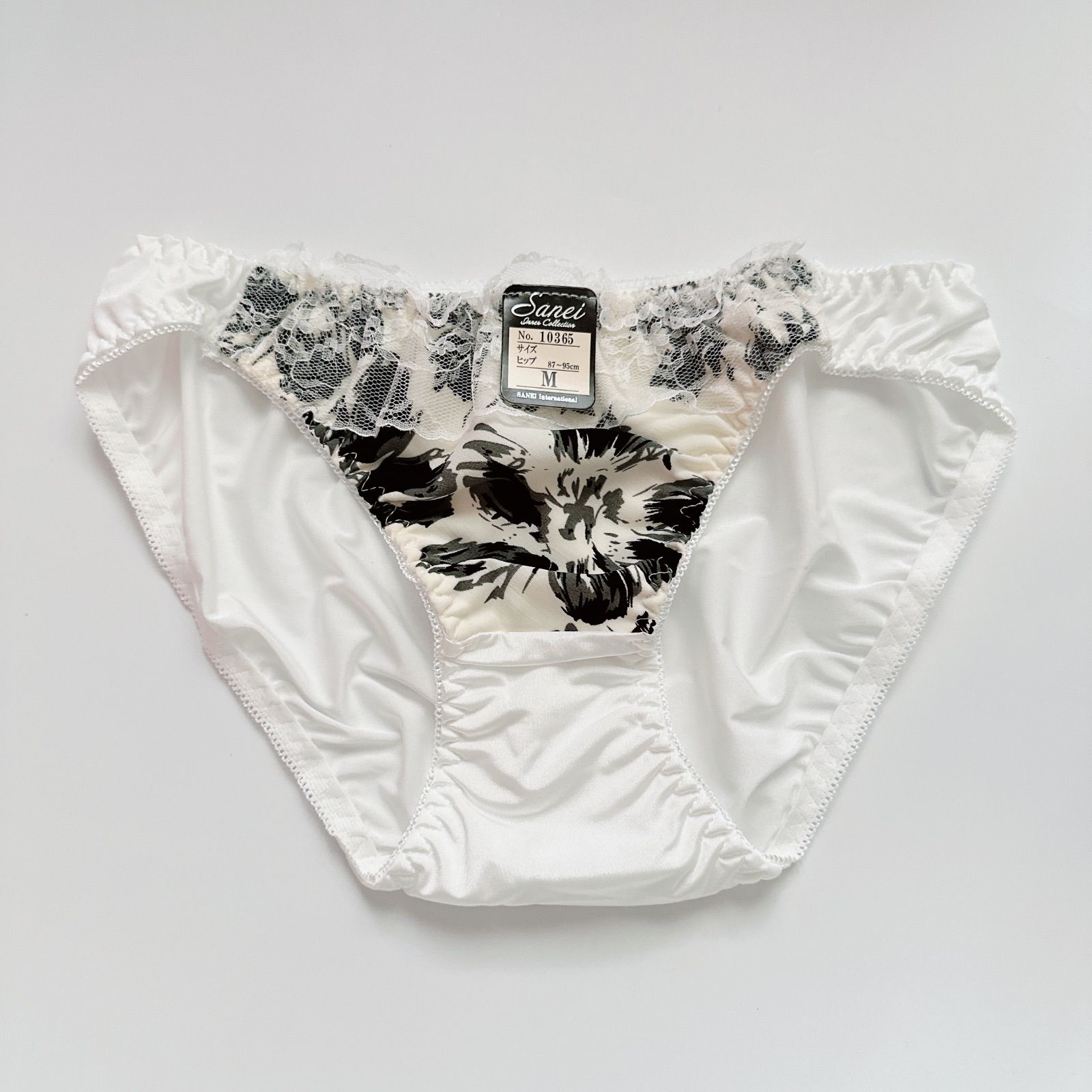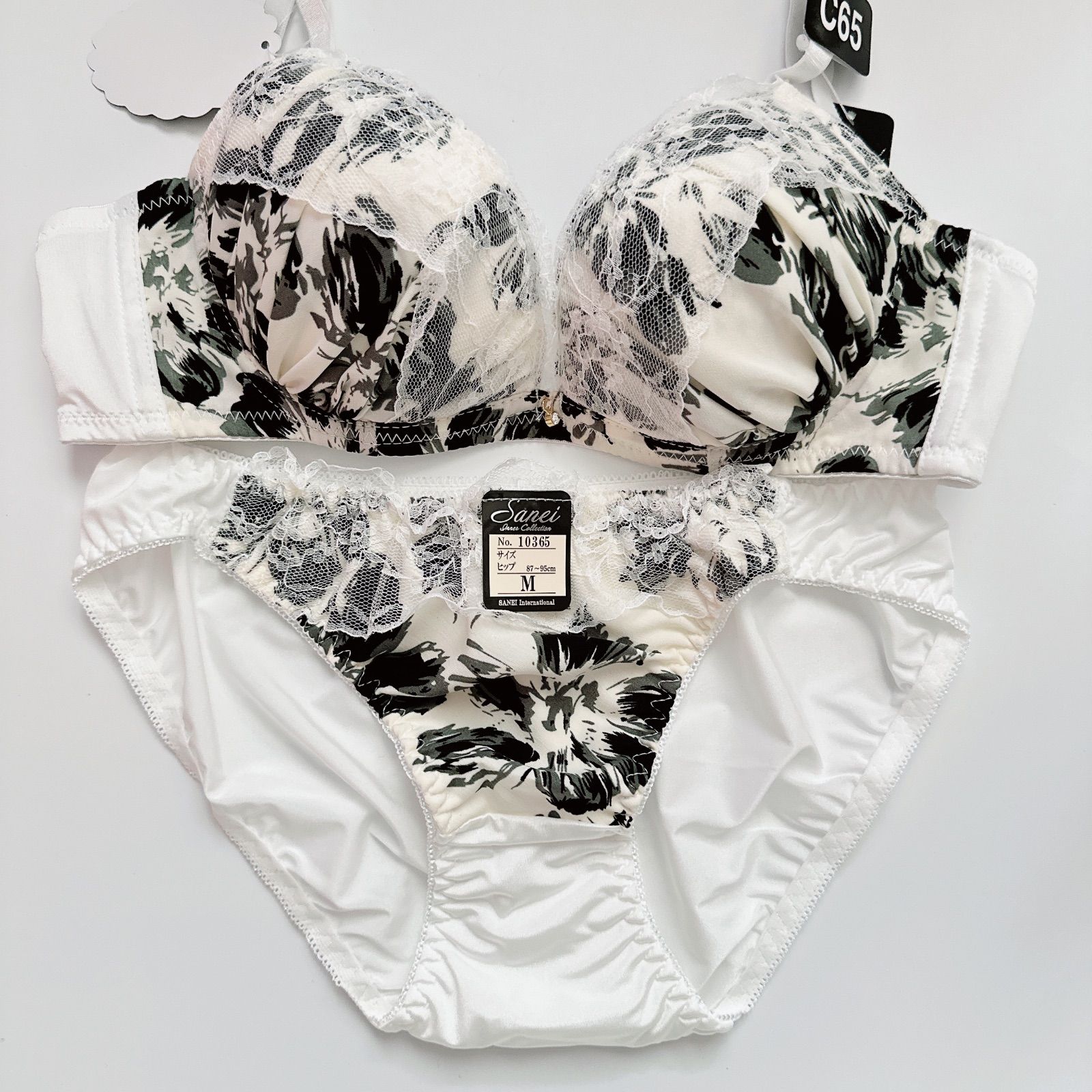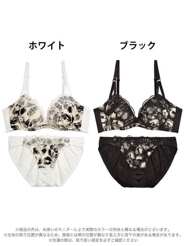 モノトーンシックフラワー育乳脇高ブラジャー&フルバックショーツ