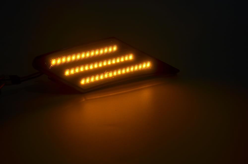 【ダイナミックLEDフロントサイドマーカーライト】純正の点滅式にかわって流れるウインカーを採用し、転向する時もっと目立つ。LEDシーケンシャルウインカーで流れ星のような煌めきを纏わせれば、どこを走っても注目の的になります。
