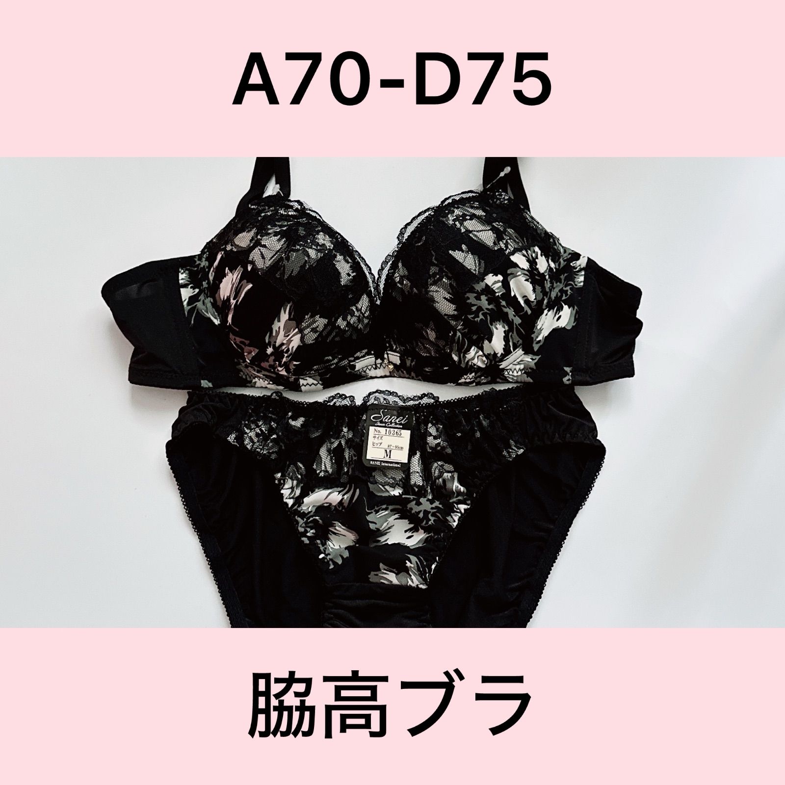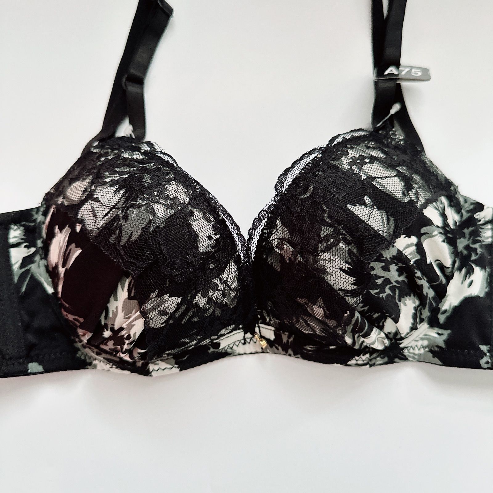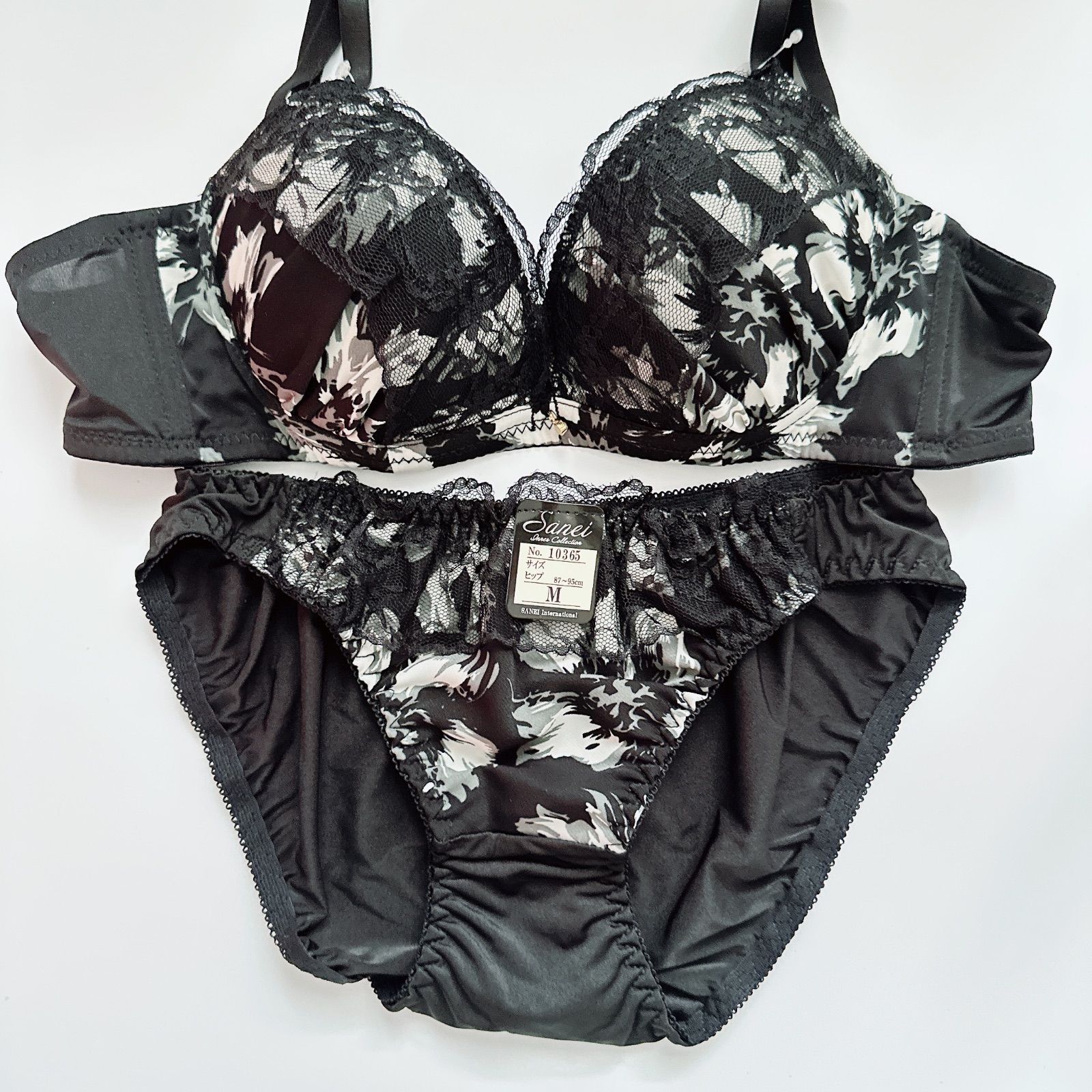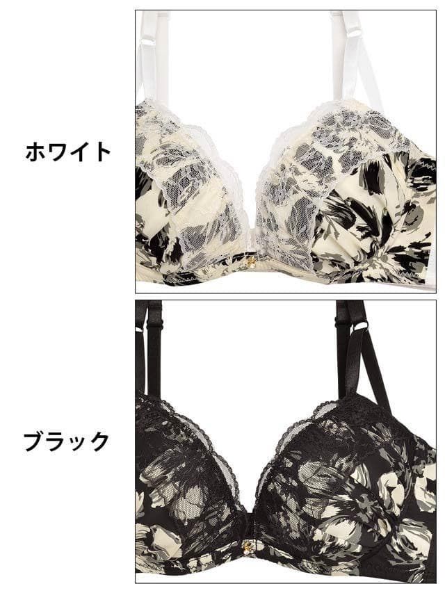 モノトーンシックフラワー育乳脇高ブラジャー&フルバックショーツ