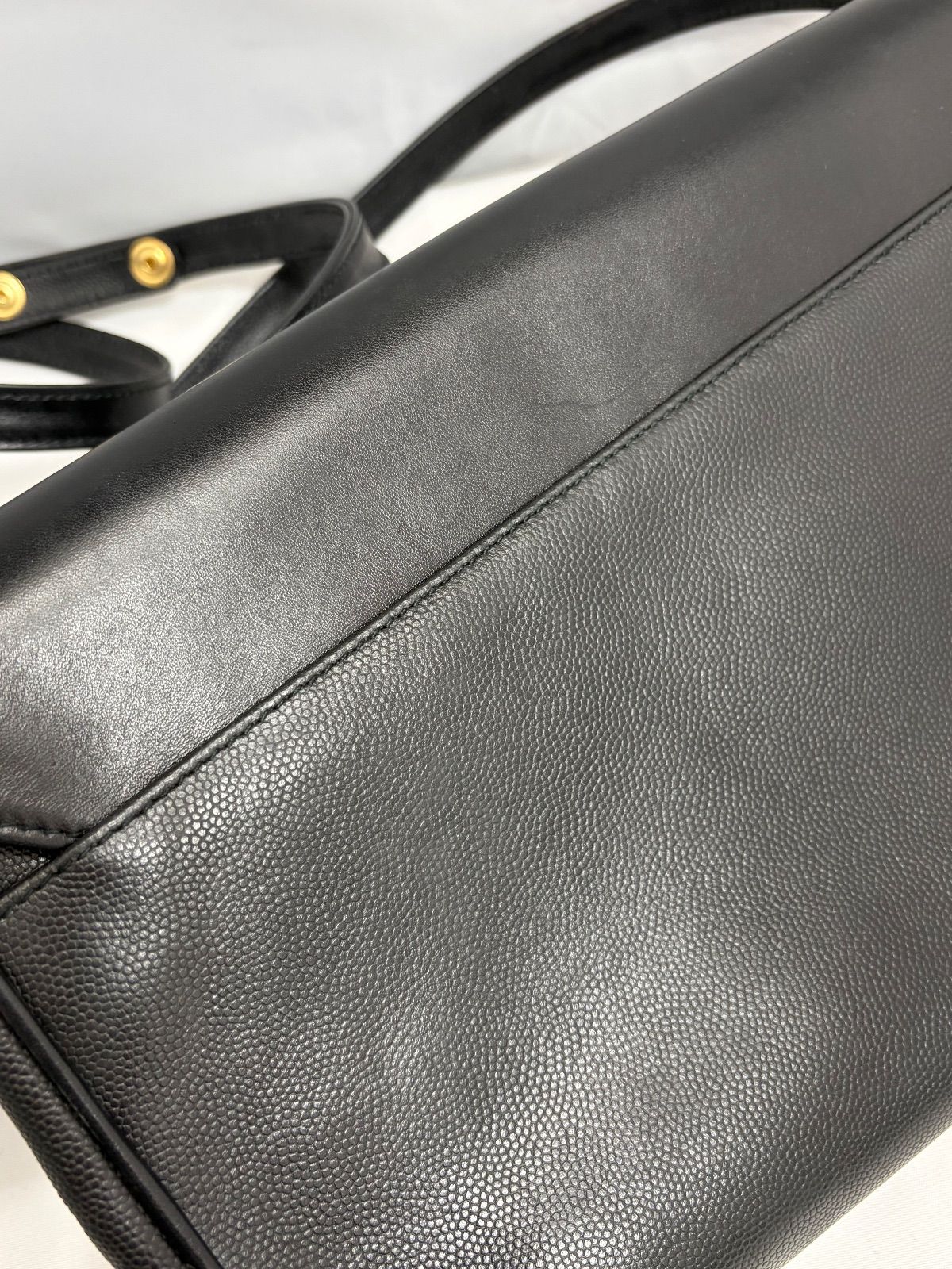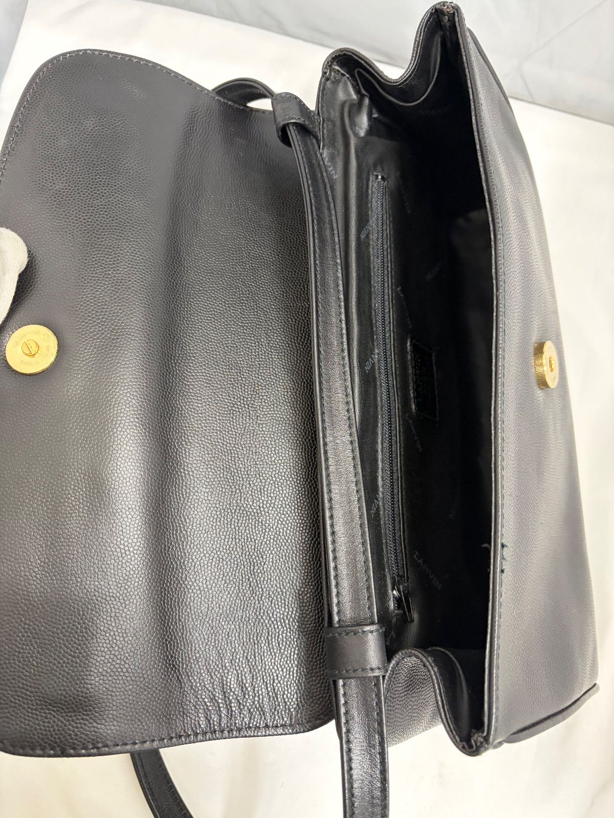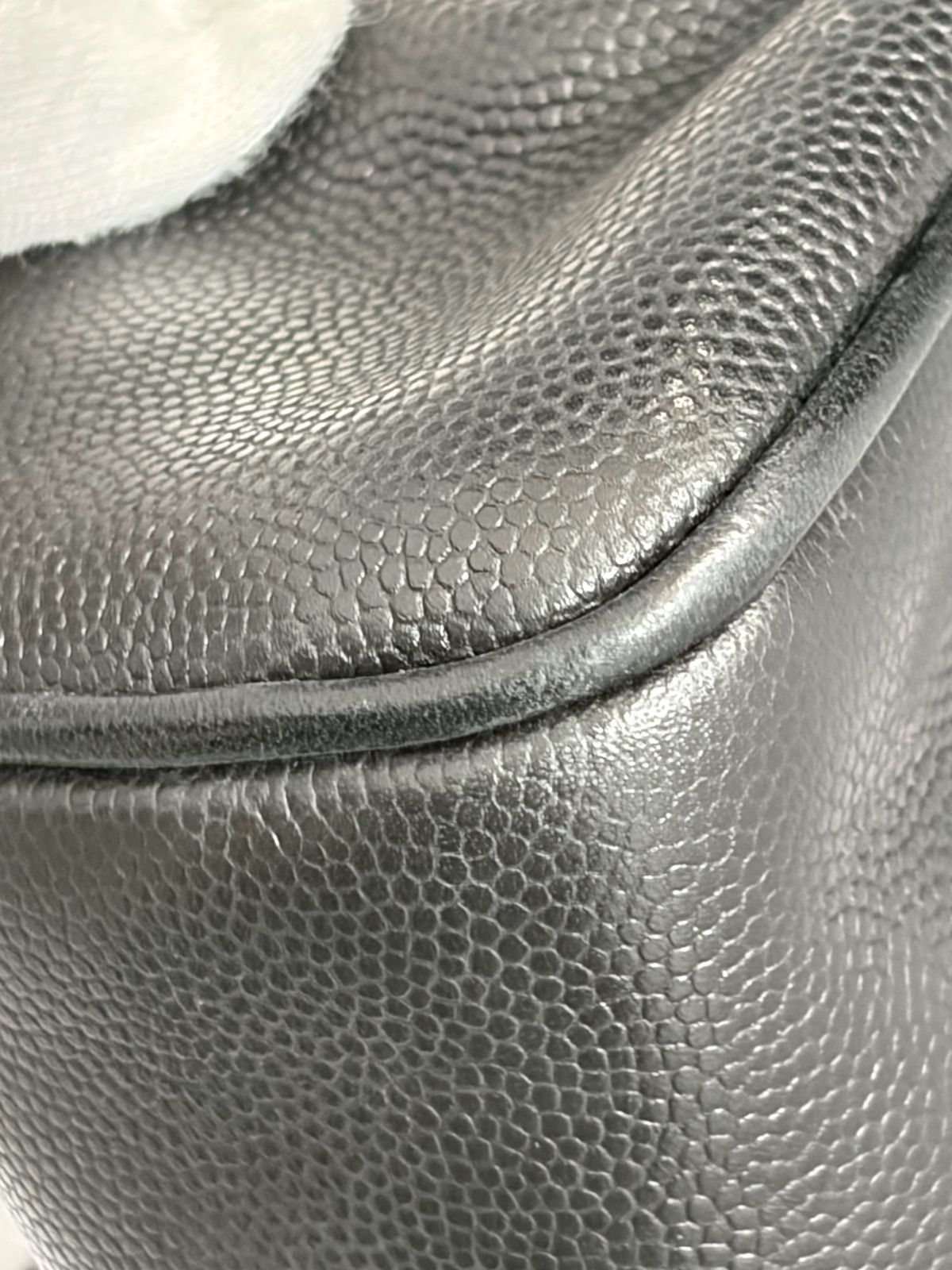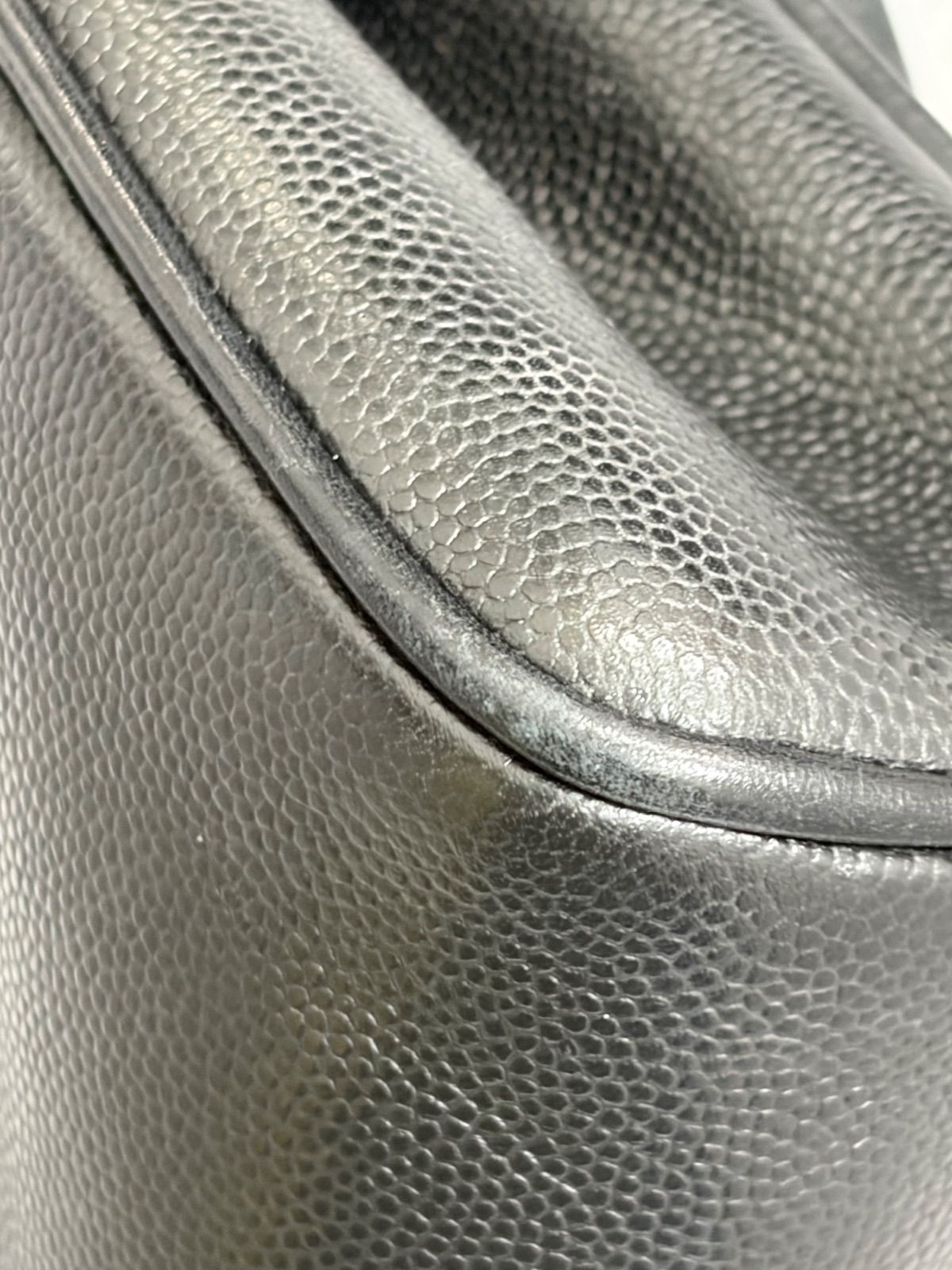 目立つダメージは有りませんが、ビンテージ品につき多少のキズが有ります。フラップ部分とショルダーストラップ以外は、キャビアスキンのようなレザーなので、キズが目立ち