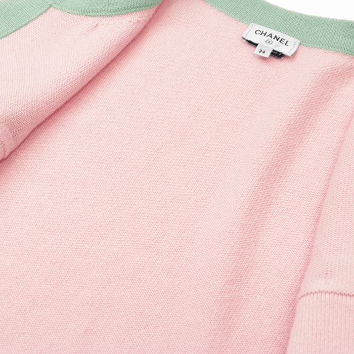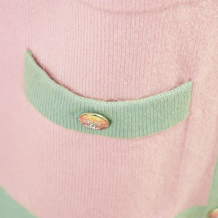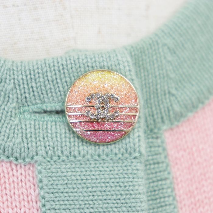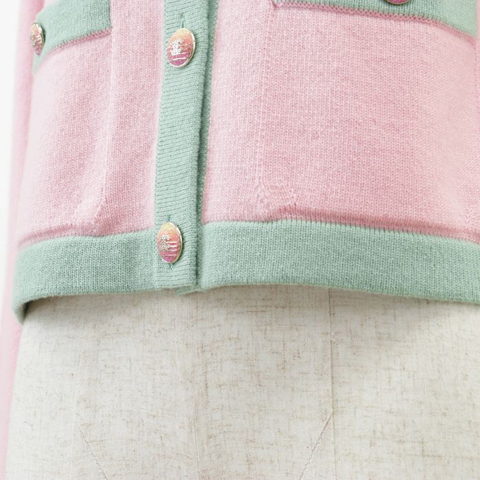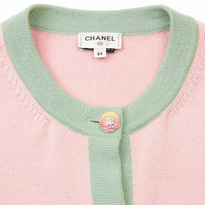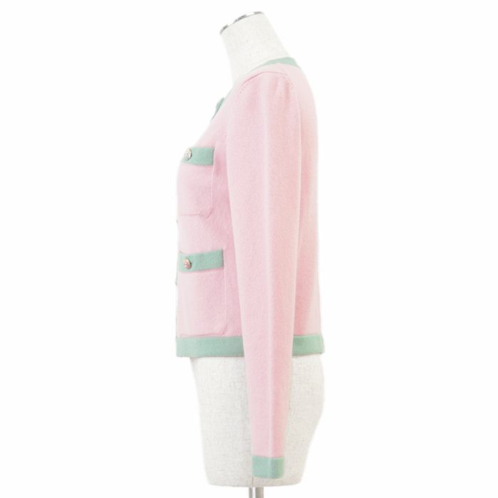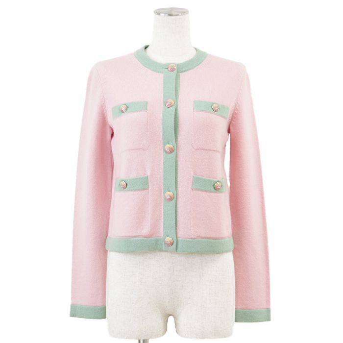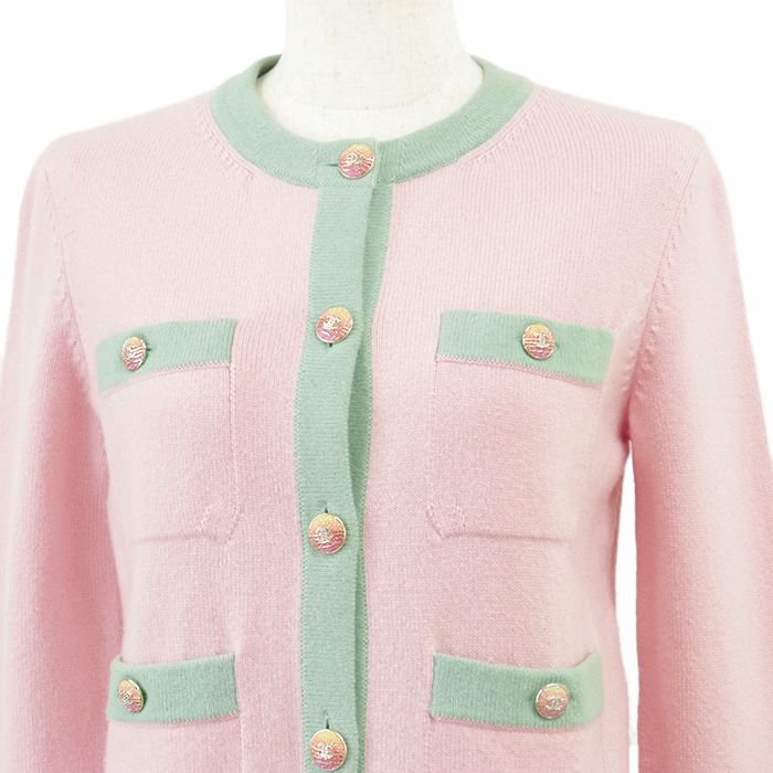 【シリーズ】CHANEL シャネル ニットカーディガン P76463 カシミヤ100% COCOマーク ボタン 長袖 レディース 34 桃色 ミントグリーン