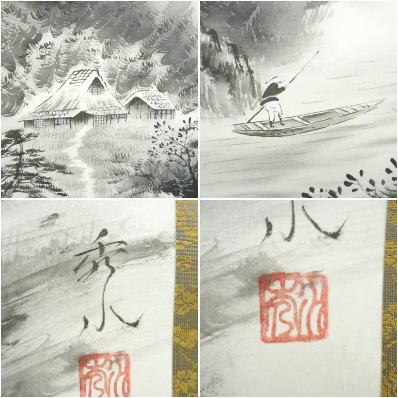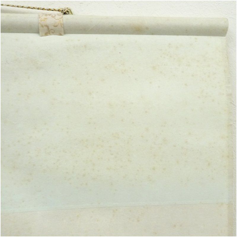 表具:表面上部に薄いシミがわずかにあります。裏面上部にシミが多くあり、その他全体にシミがあります。