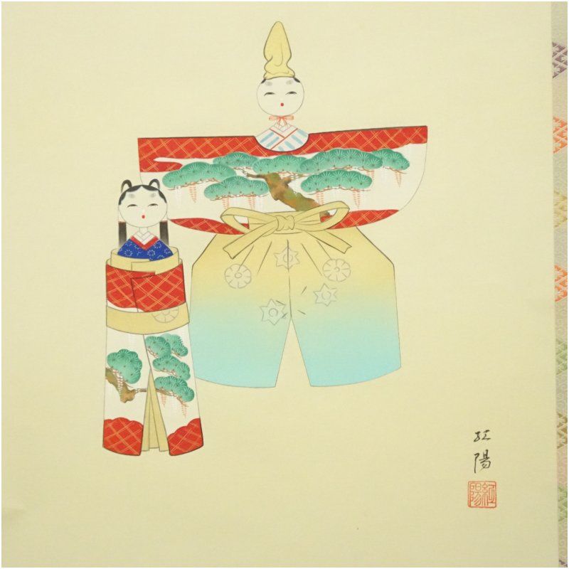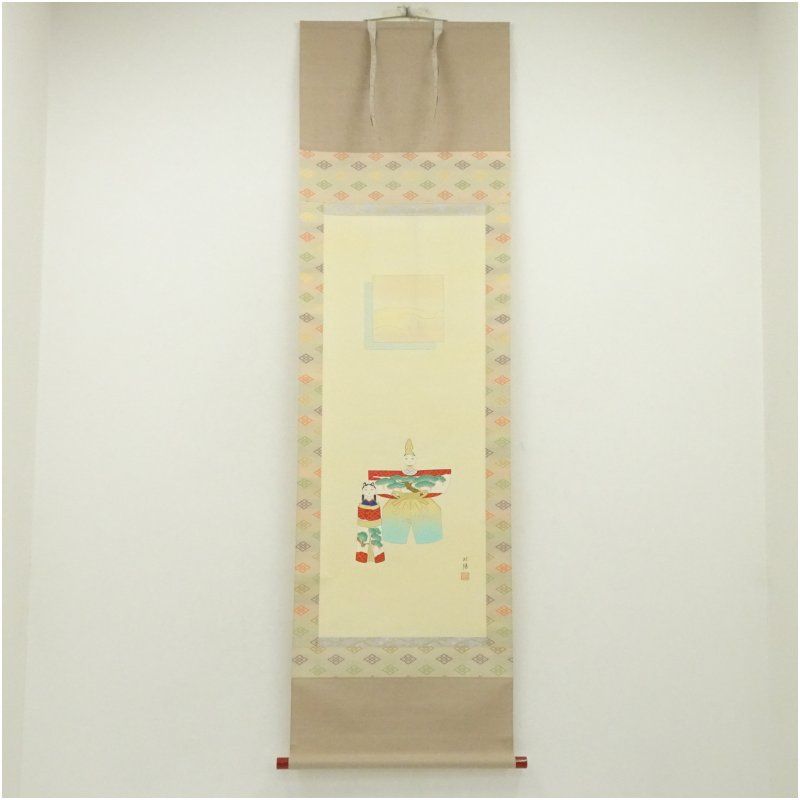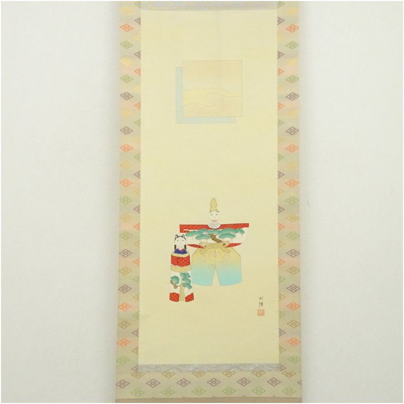 紅陽筆 立雛 肉筆絹本掛軸(共箱) 掛け軸 床の間 書 おしゃれ 絵画 表具 芸術 茶道 年中掛け インテリア 茶掛 掛物 和室