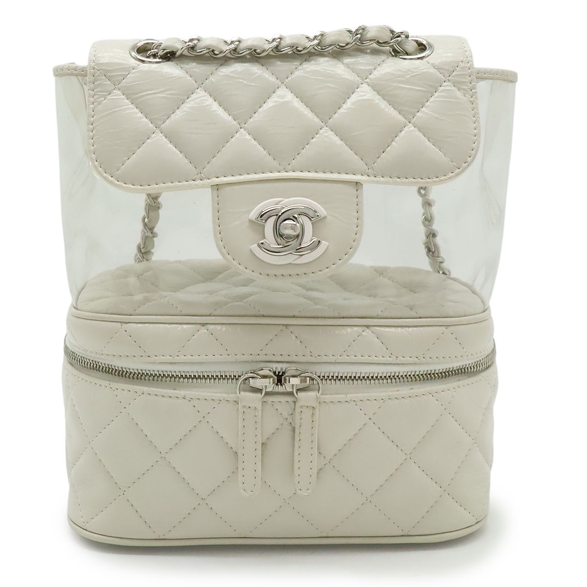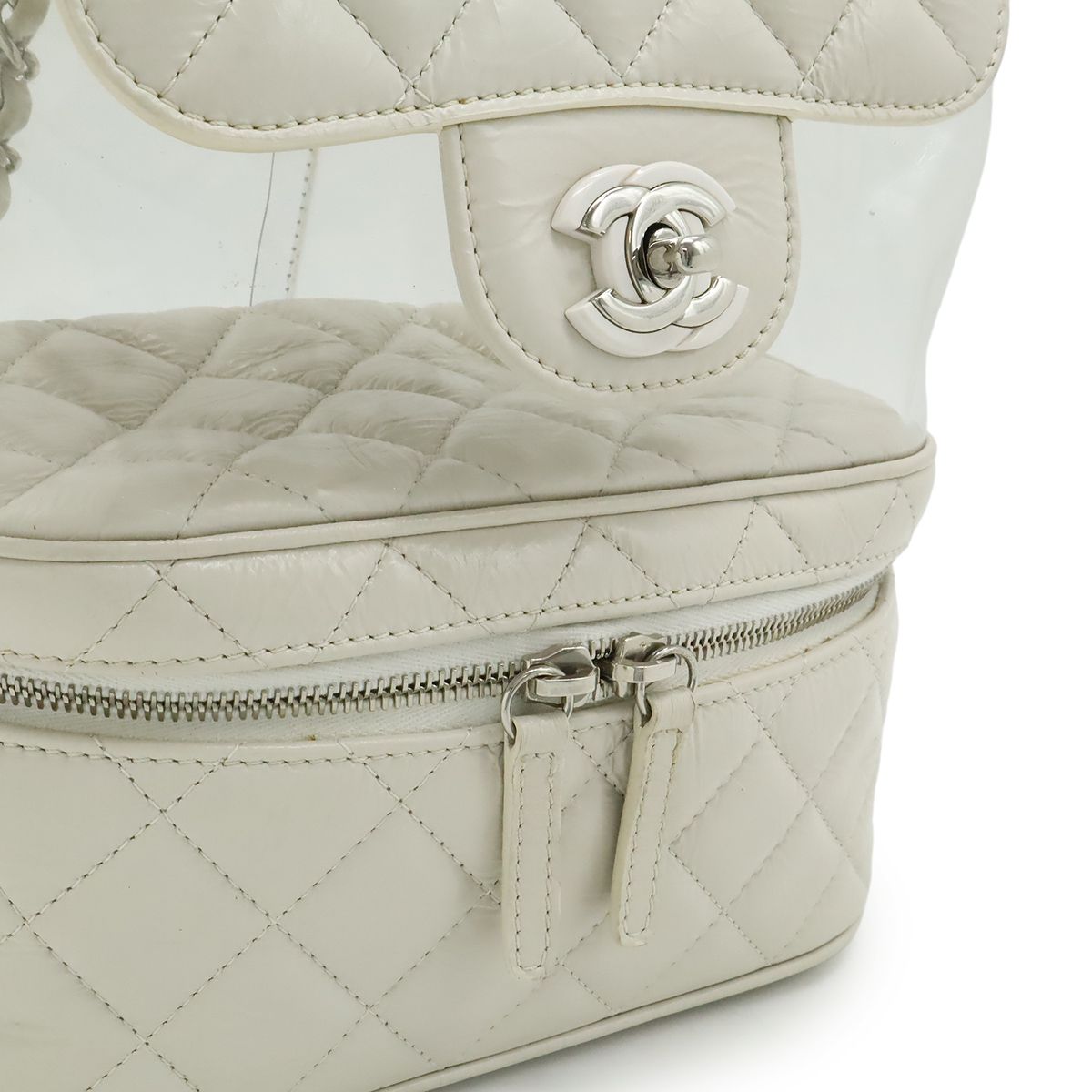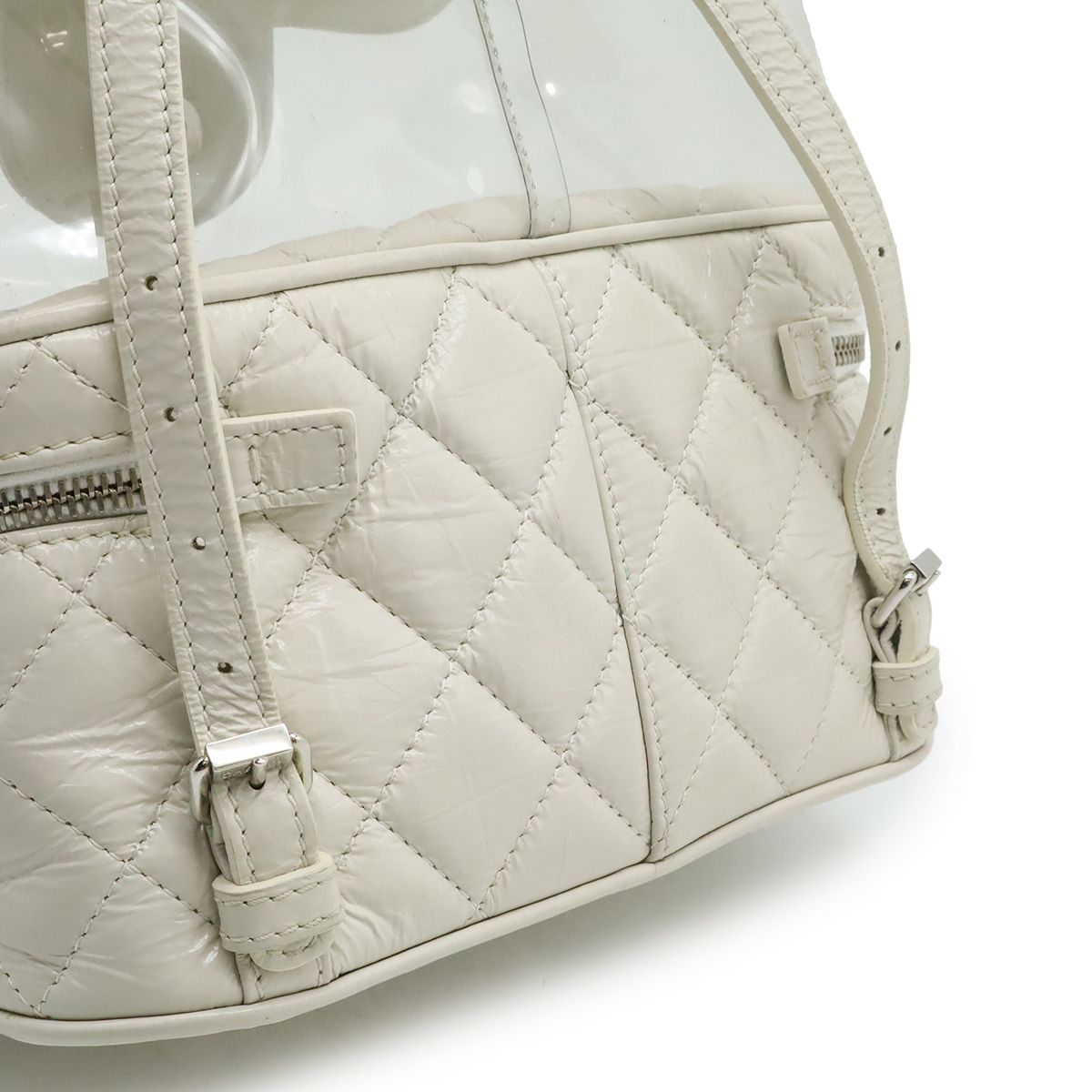 レザーとビニールの組み合わせがお洒落なシャネルのショルダーバッグ。