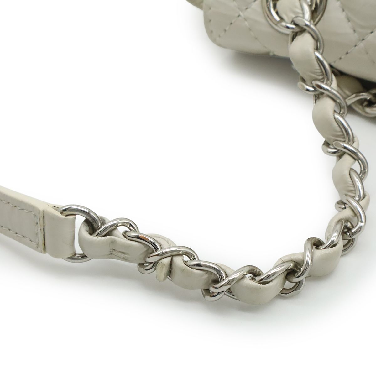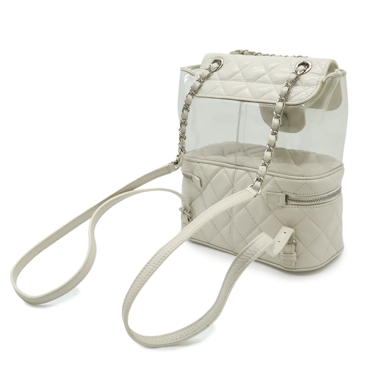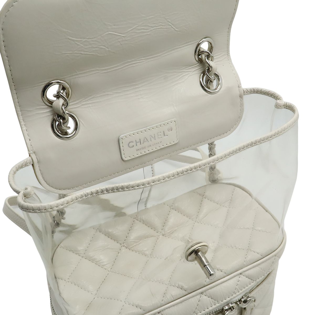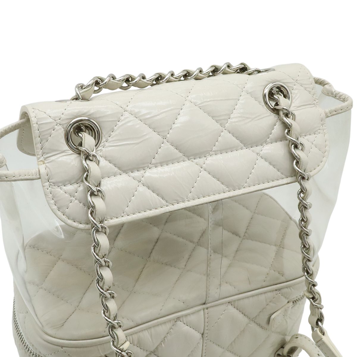 レザーとビニールの組み合わせがお洒落なシャネルのショルダーバッグ。