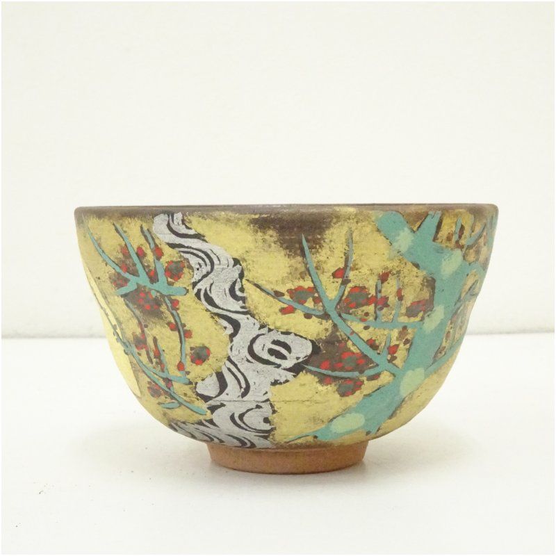 九谷焼 高明造 色絵紅白梅茶碗(共箱) 茶道 抹茶 おしゃれ 抹茶茶碗 抹茶碗 和食器 レトロ 茶器 骨董 茶わん 茶会 茶の湯 2月 1月 冬