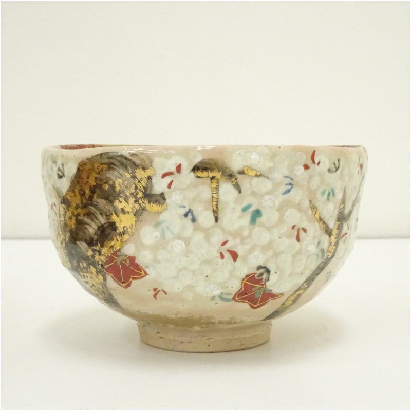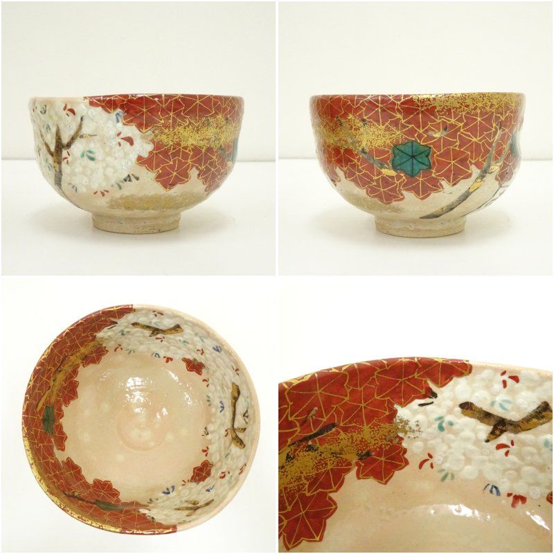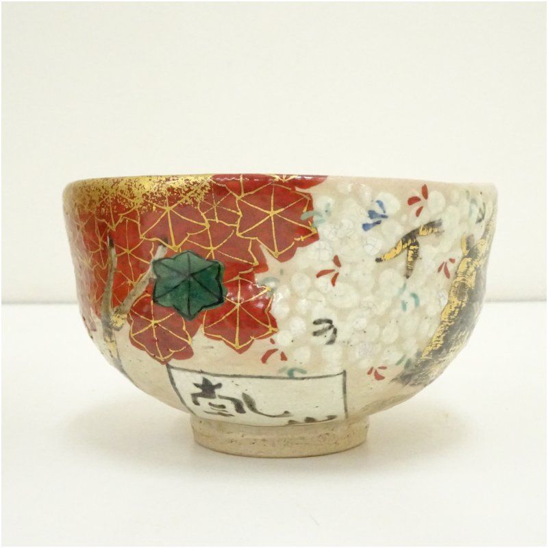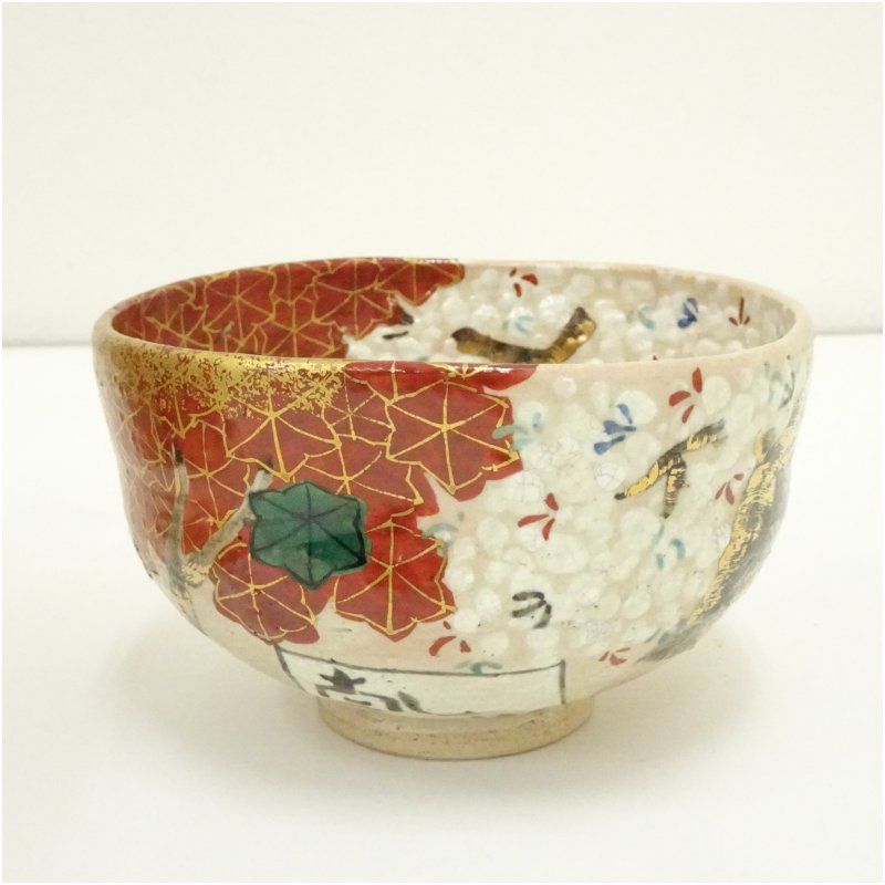 京焼 尾形乾山造 色絵雲錦茶碗(共箱) 茶道 抹茶 おしゃれ 抹茶茶碗 抹茶碗 和食器 レトロ 茶器 骨董 茶わん 茶会 茶の湯 3月 11月 春秋