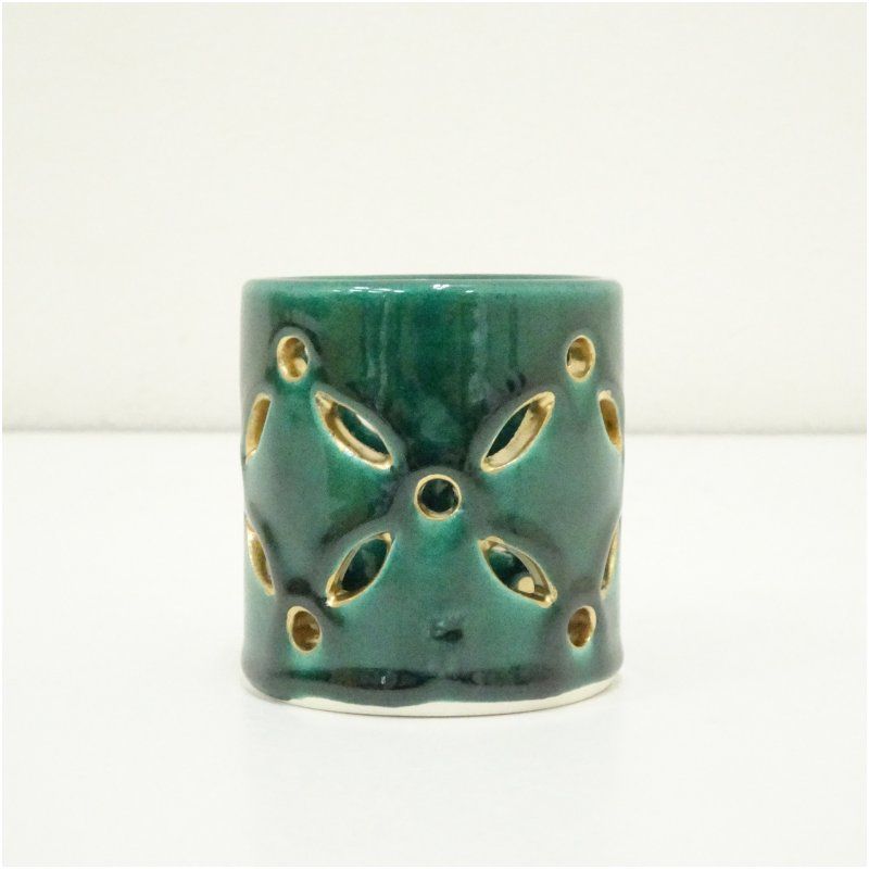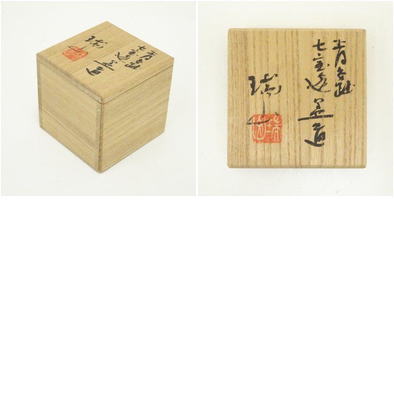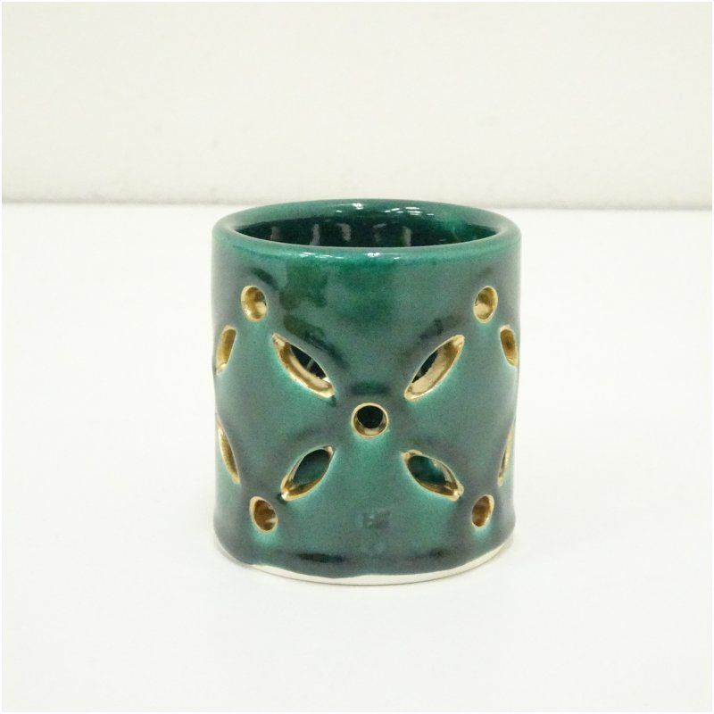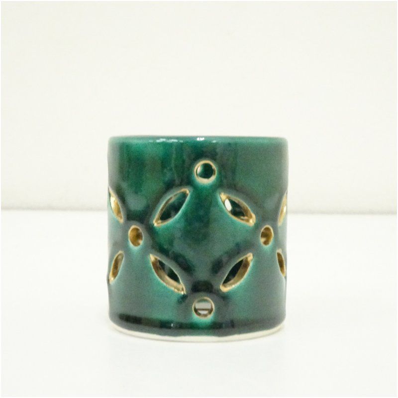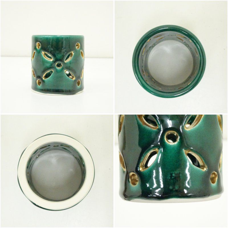 萬古焼 加賀瑞山造 青釉七宝透蓋置(共箱) 蓋置き 茶道 道具 茶道具 おしゃれ ふたおき 茶器 抹茶 骨董 お茶 台 茶会 茶席 茶事 茶の湯